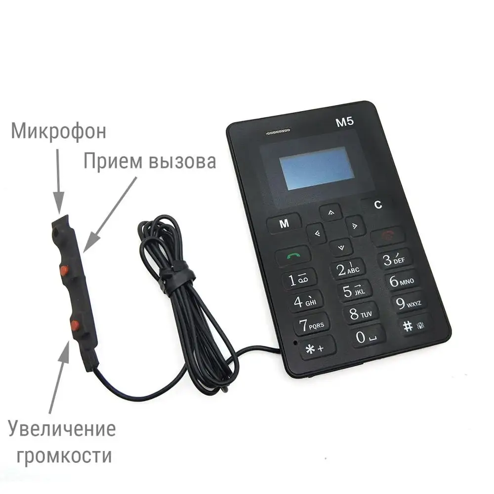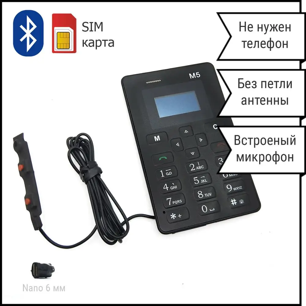 Вставьте сим-карту в карту-телефон и совершайте исходящие звонки и принимайте входящие. Вы будете слышать через микронаушник, а вас будут слышать через чувствительный микрофон, который можно расположить где удобно, например в рукаве. Входящий вызов принимается нажатием на любую клавишу.