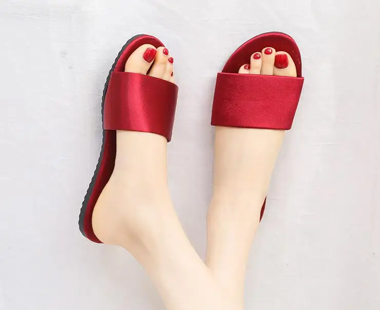 Женские летние тапочки, новинка 2020, женские Сатиновые Шлепанцы из...