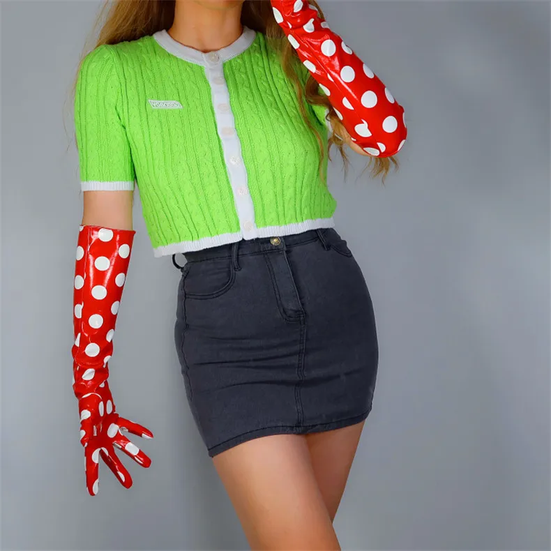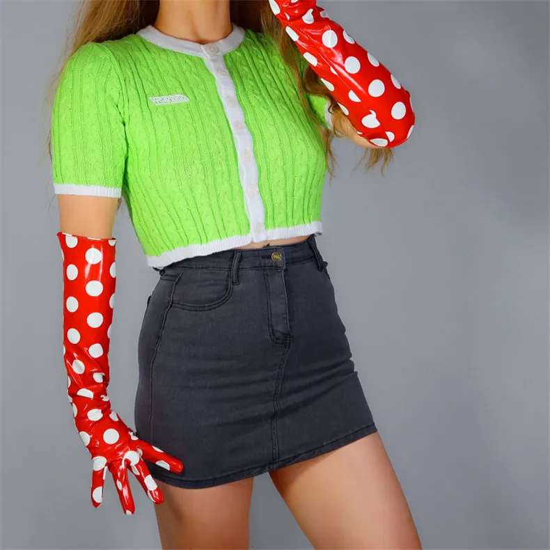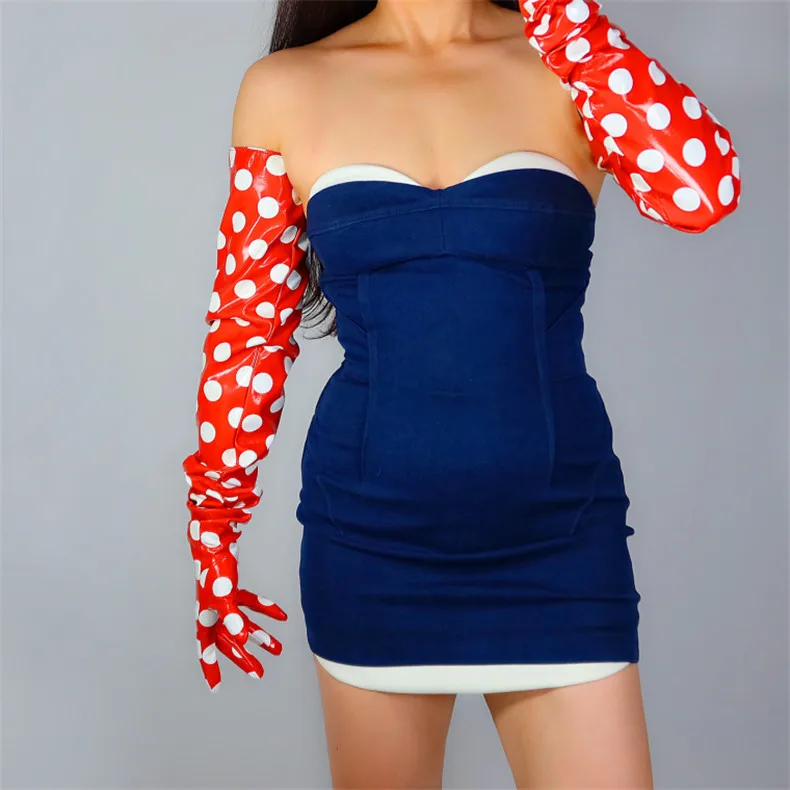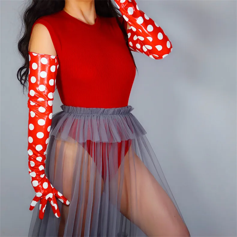 Крупный горох длинные перчатки 90 см широкие лакированные красные женские перчатки в белый горошек из искусственной кожи WPU294