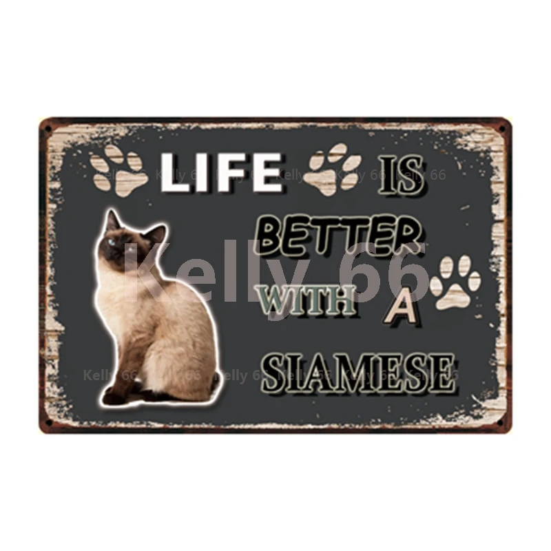 Kelly66 домашний Кот сиамский Египетский Мау Гавана Коричневый бездзиньский Металлический Знак Домашний Декор Бар настенная живопись 20*30 см размер Dy148