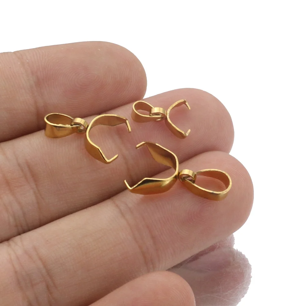 Зажим-клипса для подвесок, из нержавеющей стали, цвет под золото, 10 шт.лот, фурнитура для самостоятельного изготовления ожерелий, ювелирных изделий