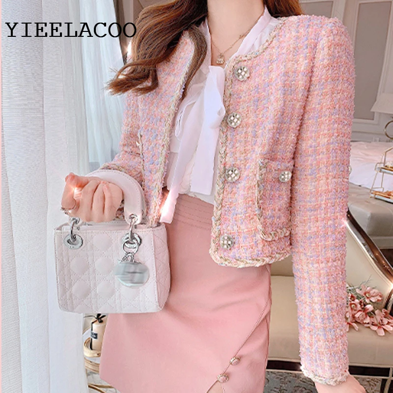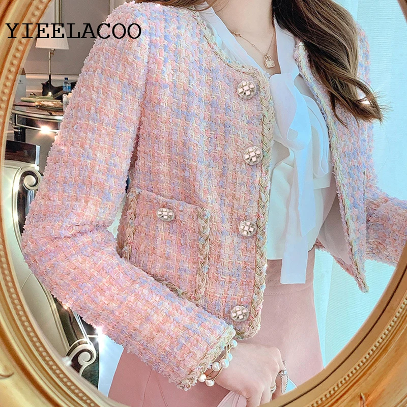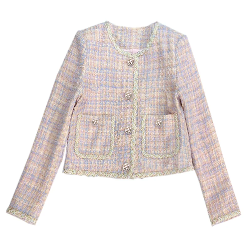 Женское твидовое пальто, универсальное короткое пальто, весна-осень 2020