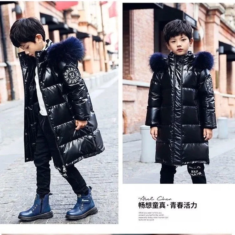 Детская зимняя куртка, теплая водонепроницаемая куртка для девочек длинные хлопковые пуховые пальто с капюшоном для мальчиков, Детская верхняя одежда, парка, до 30 лет