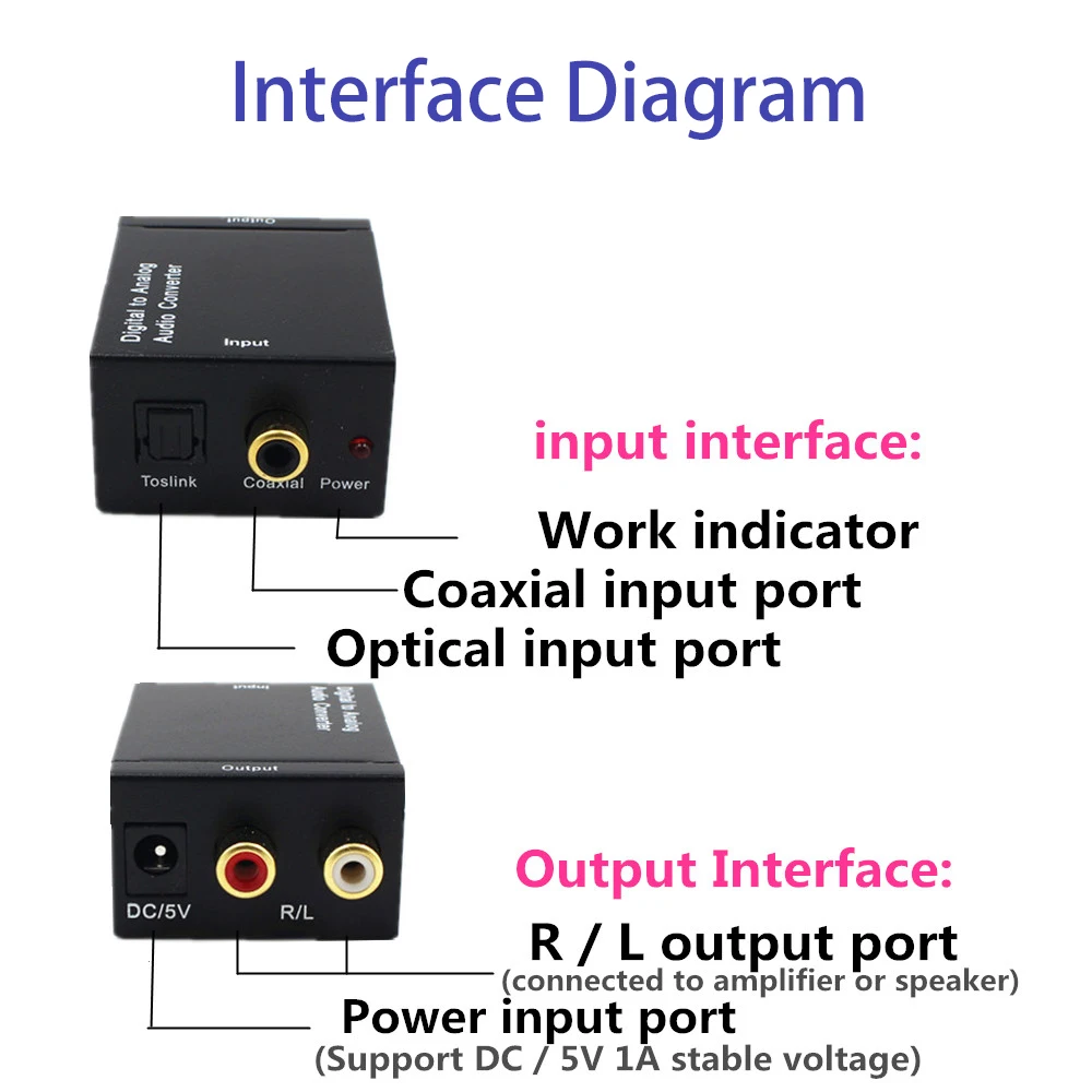 Он преобразует коаксиальные или Toslink цифровые аудиосигналы в аналоговый стерео аудио L/R и доступен для подключения к внешнему устройству, например, усилитель через стандартные разъемы в стиле RCA.