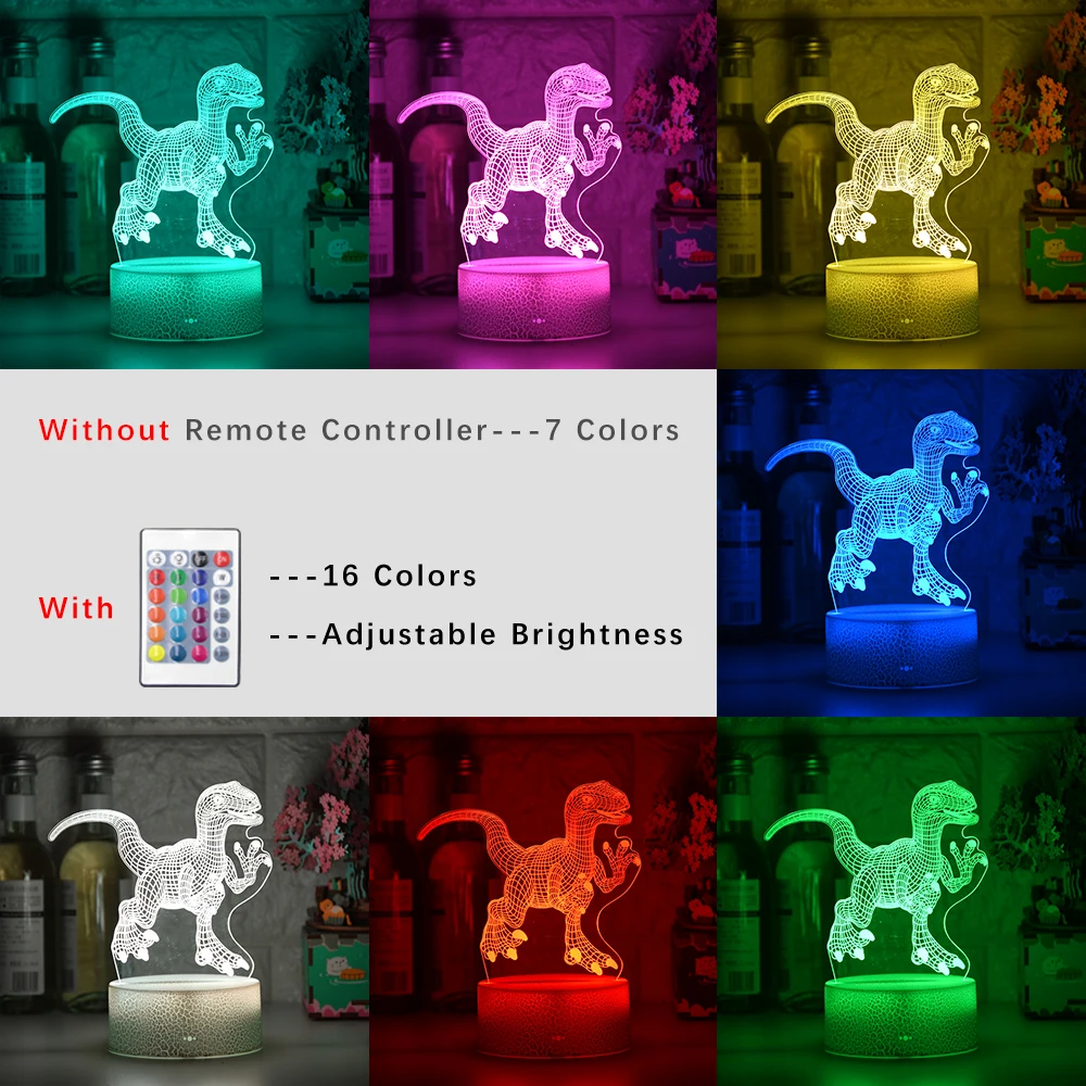 Новейшая модель; Динозавр 3D иллюзия Лампа 7 цветов Изменение диста...