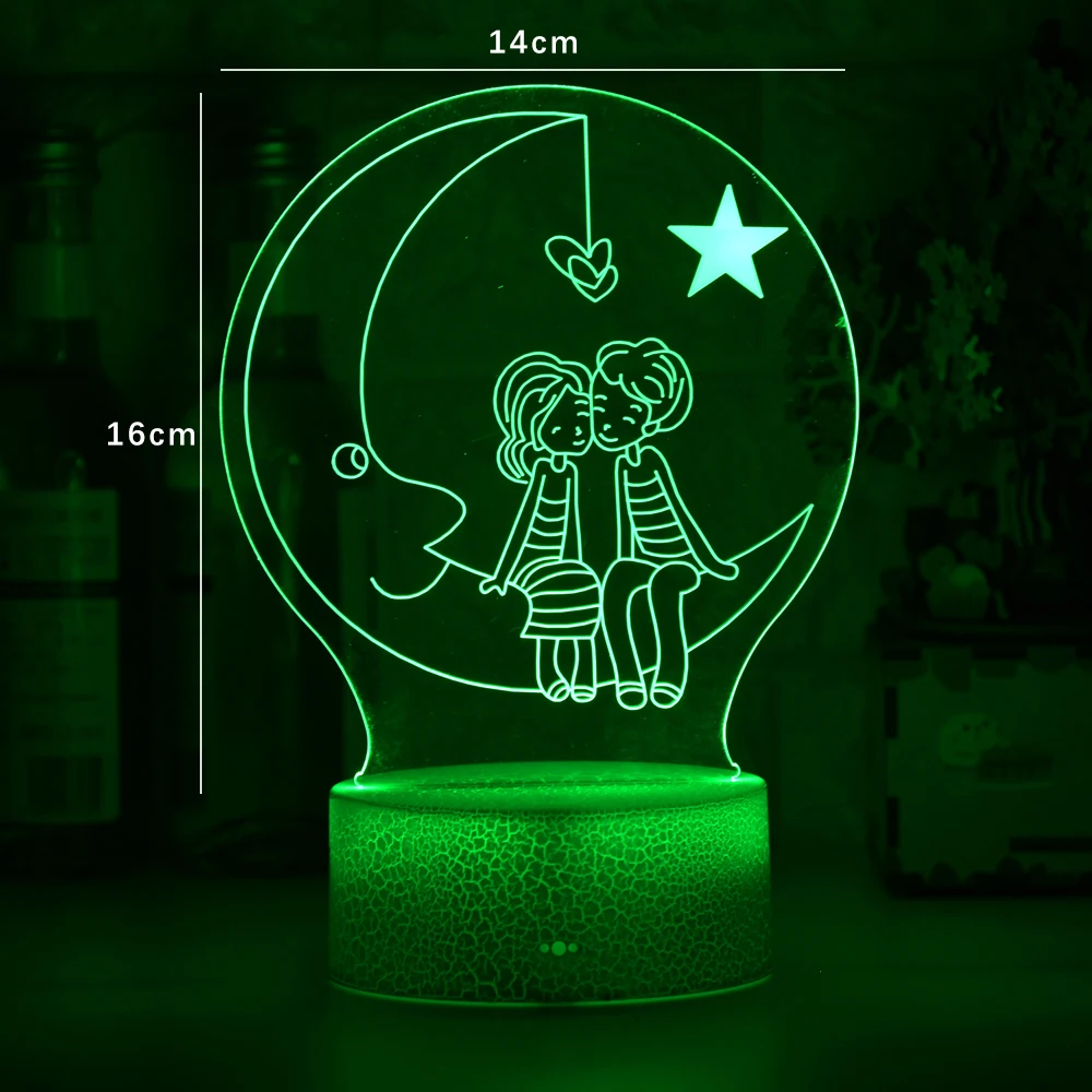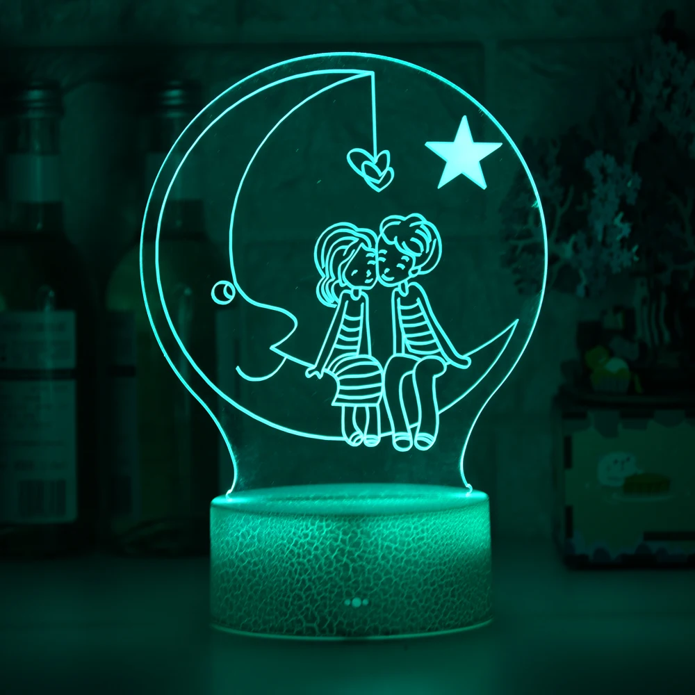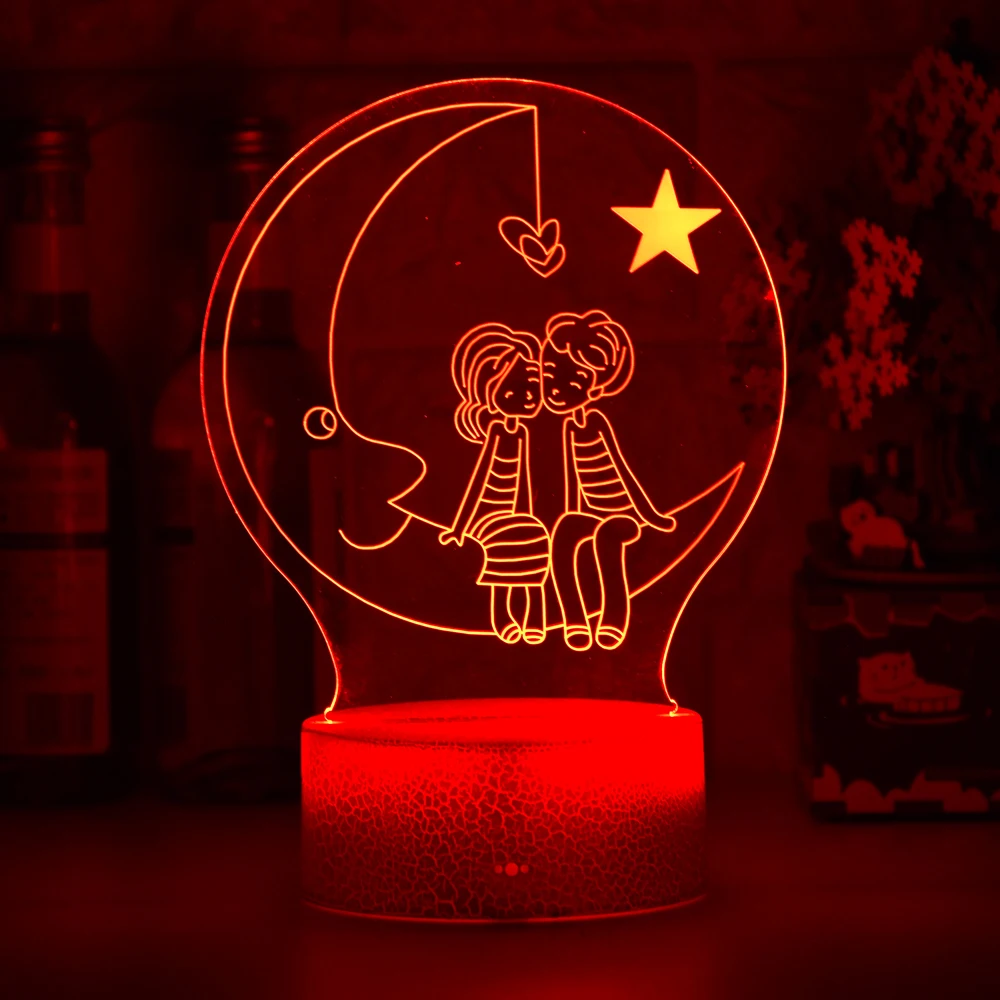 Новый Романтический 3D светильник в форме сердца, луна, акриловый светодиодный ночник, декоративная настольная лампа на День святого Валентина, милый подарок для жены