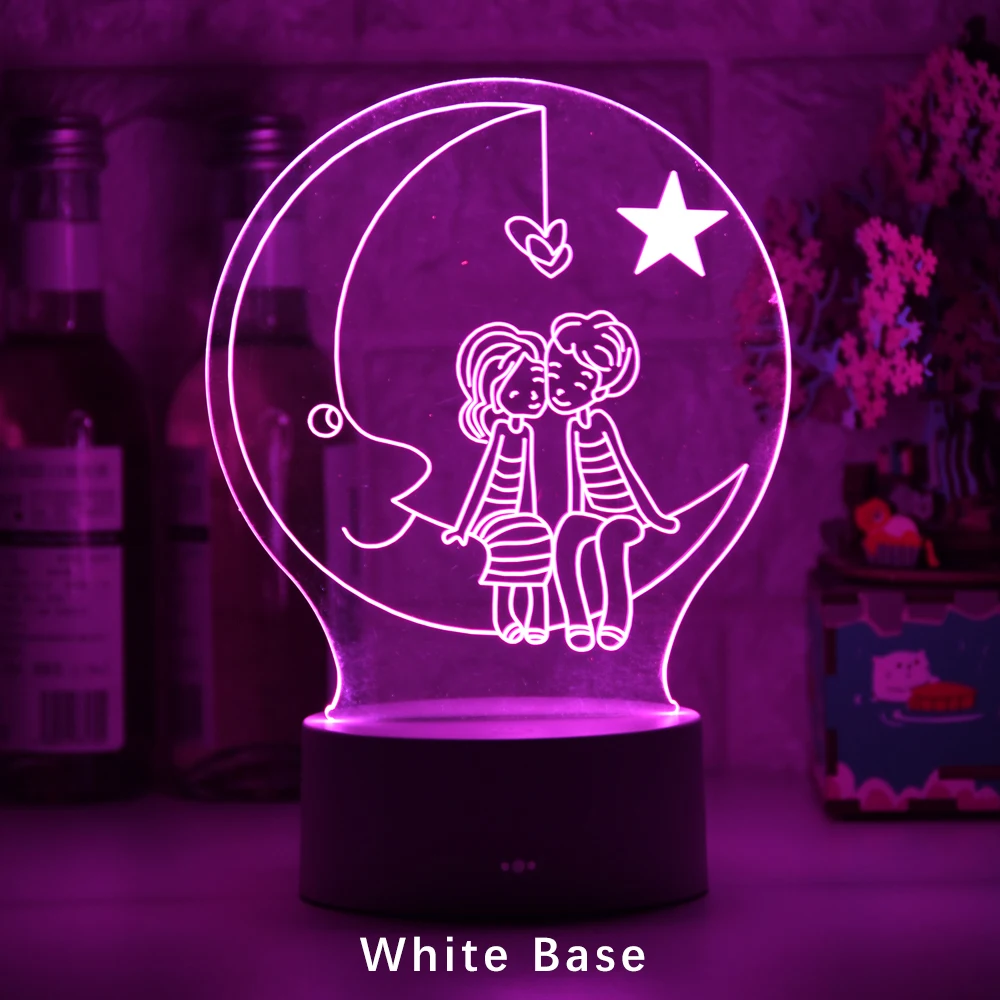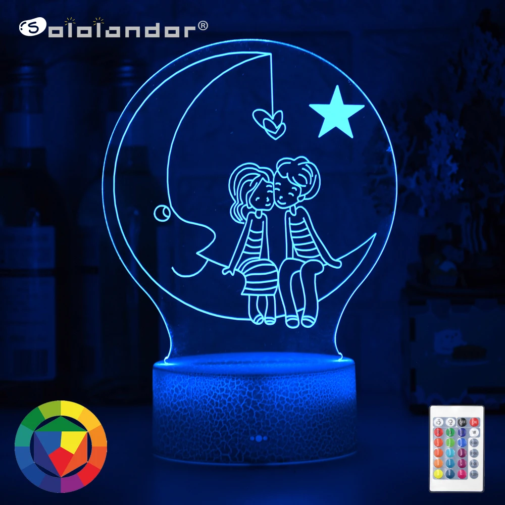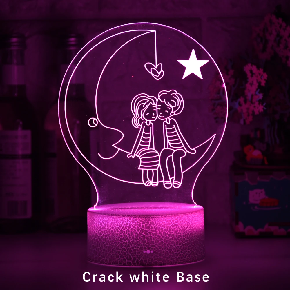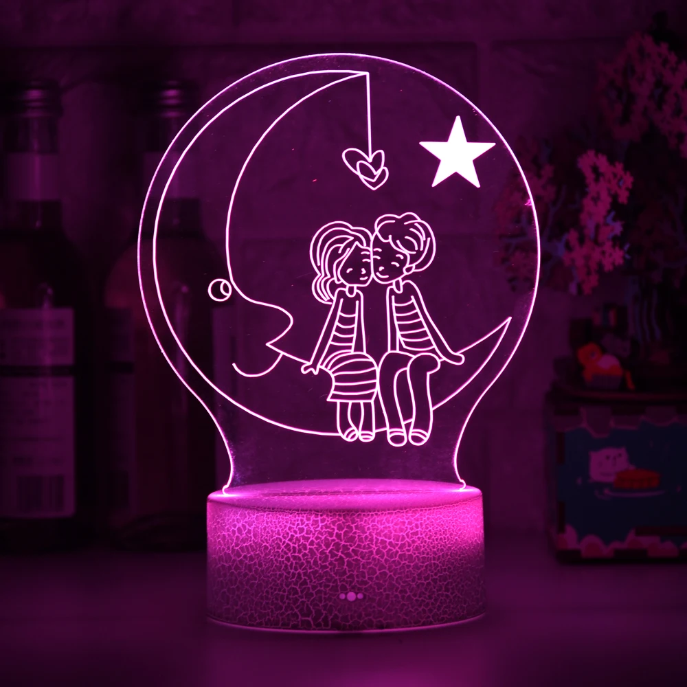 Новый Романтический 3D светильник в форме сердца, луна, акриловый светодиодный ночник, декоративная настольная лампа на День святого Валентина, милый подарок для жены