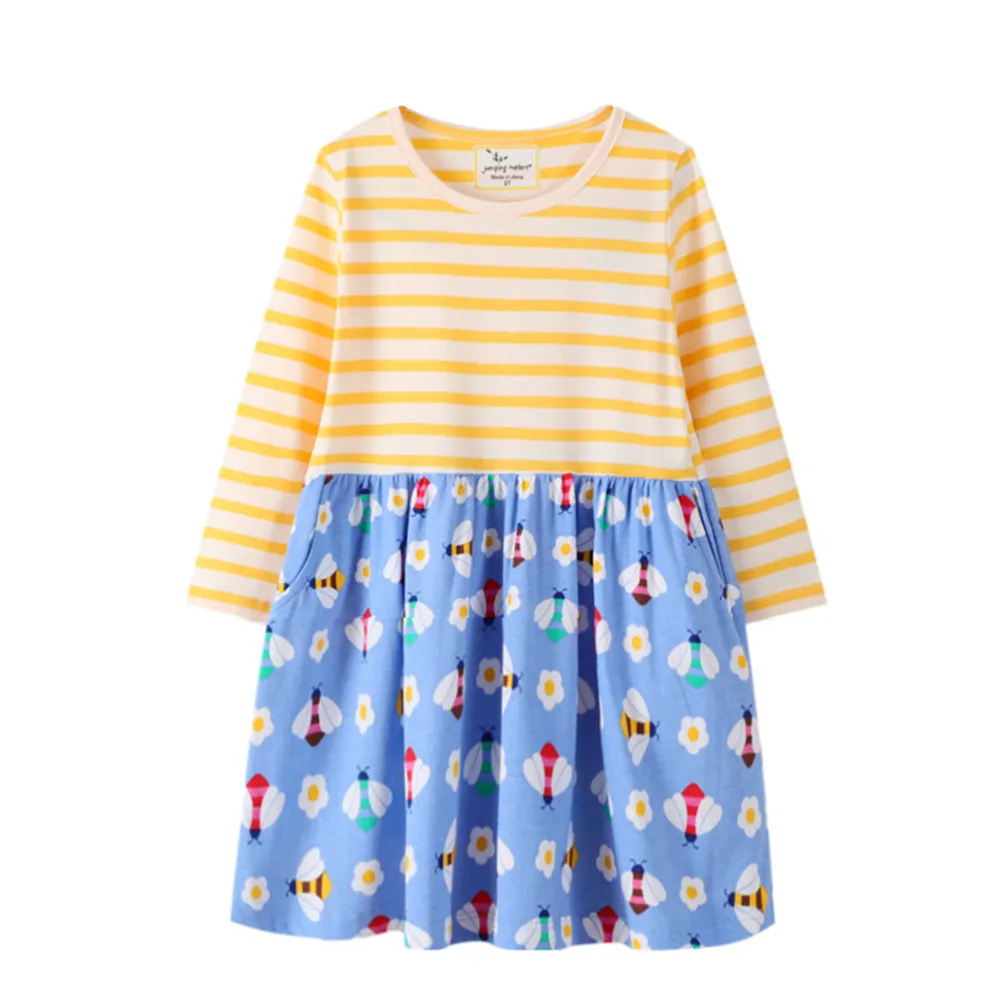 Платье детское хлопковое в полоску, с длинным рукавом, на осеньвесну