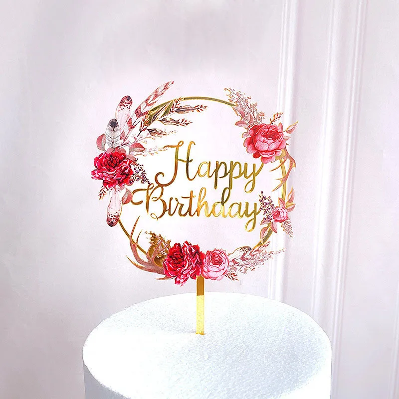 Новые акриловые топперы для торта на день рождения Ins, милые цветы, золотой Топпер для торта на день рождения, Детские рекламные товары