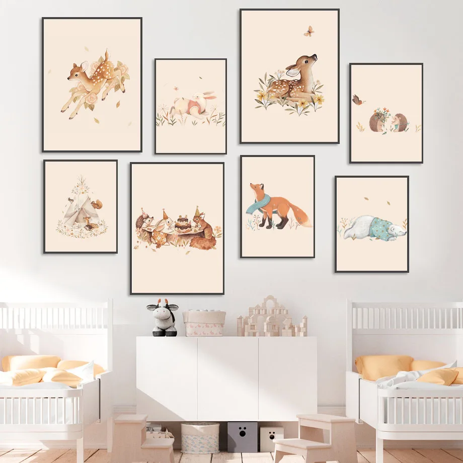 Настенная картина для детской комнаты с изображением оленя, кролика...