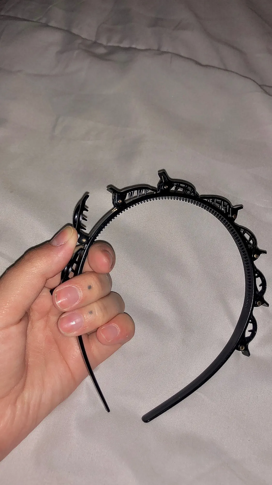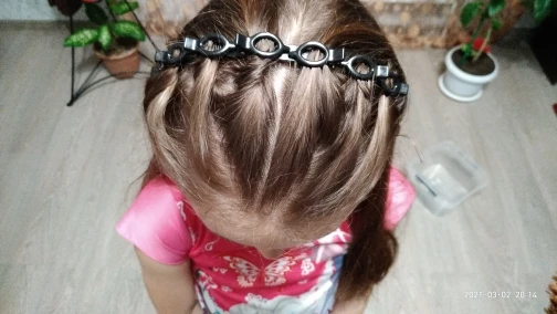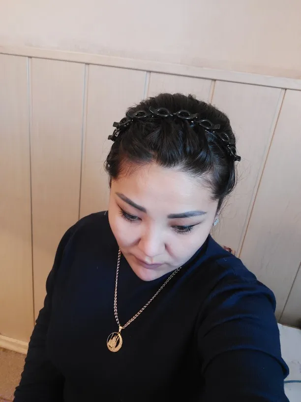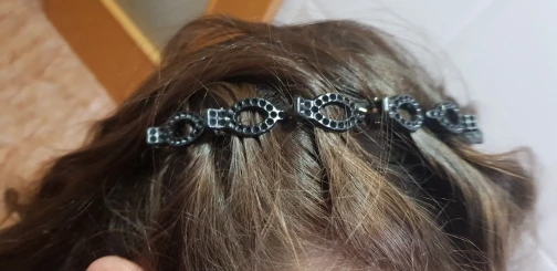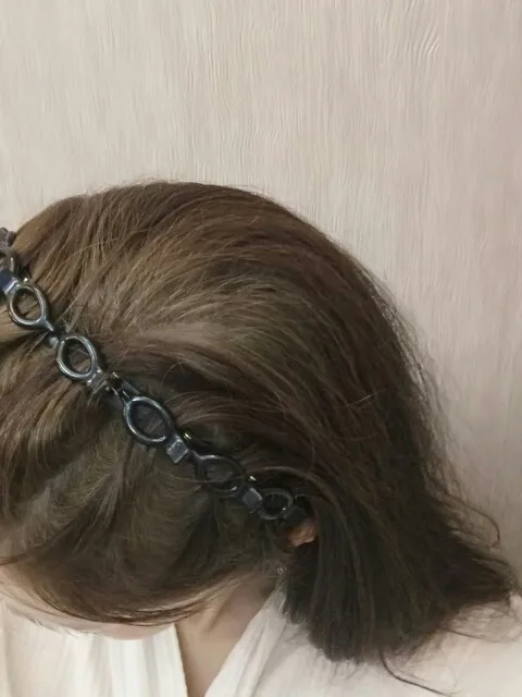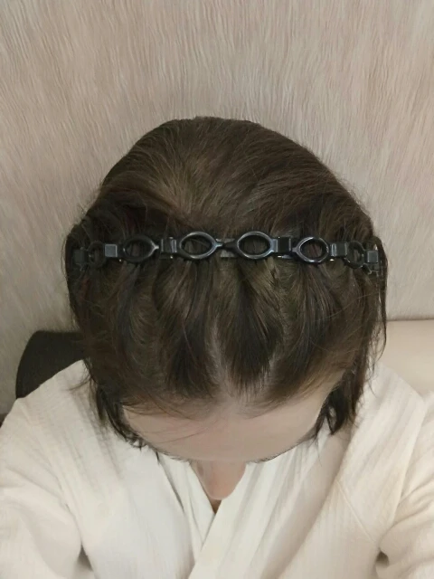 Хороший обруч. На мой взгляд, на широкую голову. Мне свободно. Волосы у меня тонкие. Требуется некоторый навык, чтобы продеть волосы в заколки. В принципе, мне понравилось. Смотрится хорошо. На густых волосах будет очень хорошо смотрется. Рекомендую.
