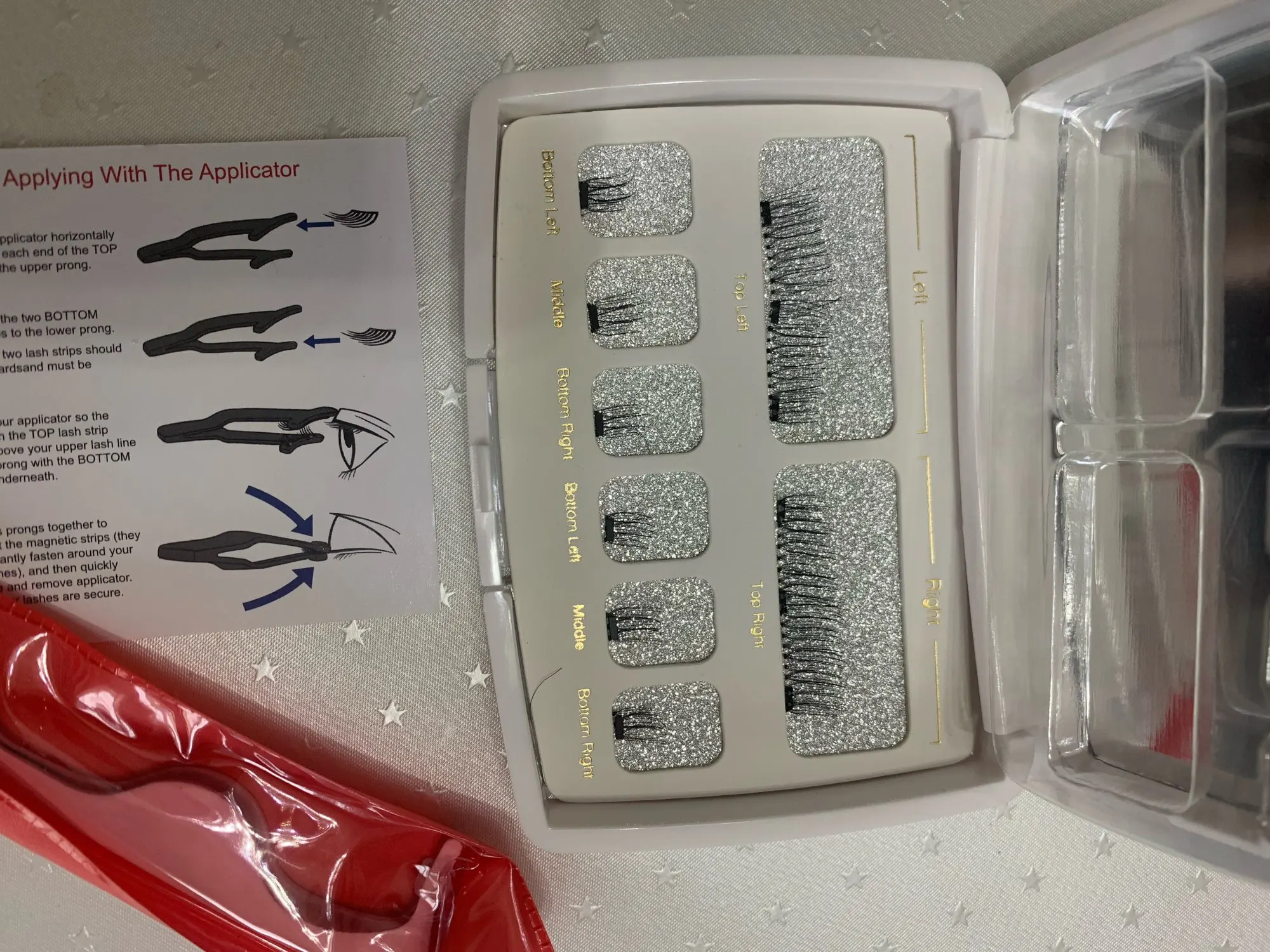 Продавец очень долго отправлял заказ. В итоге оно пришло уже с новыми заказами в одной посылке. Не было правой ресницы, поэтому попробовала с пучками. Даже прикрепить левую целиком оказалось не так-то и просто. Во-первых, они не держатся на пинцете, который в комплекте. Во-вторых, они магнитятся-то не все разом. В-третьих, они цепляются за маленькие ресницы во внутреннем уголке, и это очень больно. В итоге на прикрепления одной ресницы ушло до 10 минут и кг нервов. Просто сцепить уголки к уголкам получилось, но они слишком длинные. Да и магнит виден, они сидят очень не надёжно. Открыла спор, что не хватает 1 ресницы, продавец посоветовал мне посмотреть сначала везде, ведь вдруг я тупая видимо и не посмотрела ещё везде, где можно, но али разрешил спор в мою сторону. Херня, не берите