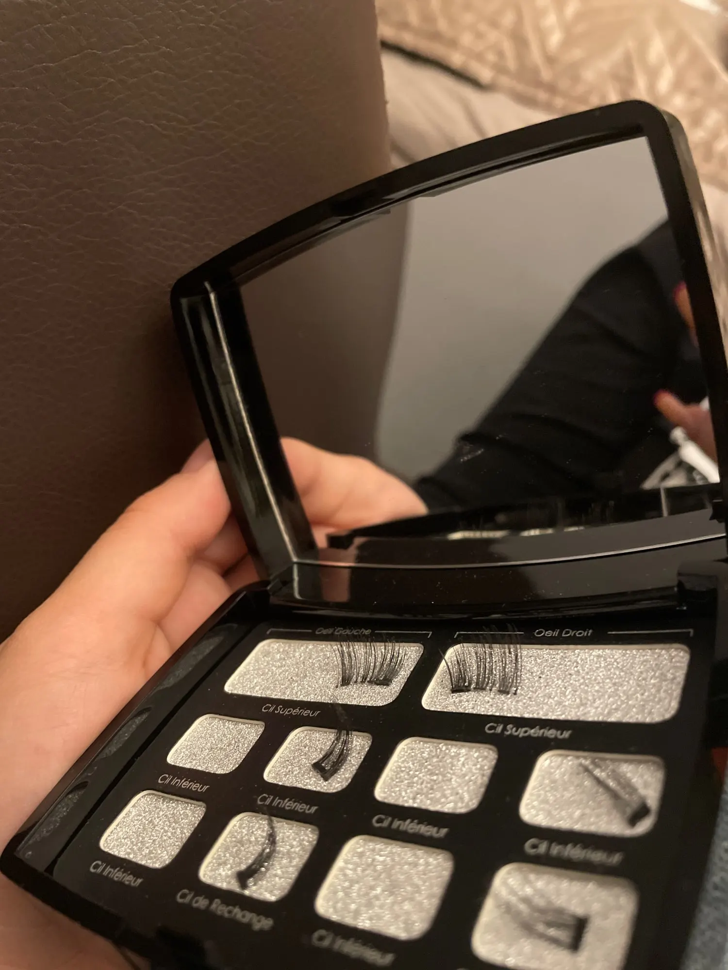 Это Рука помощи, чтобы положить их, но они очень хороши, немного короткие на мой вкус, но они красивы, и это имеет довольно естественный эффект, вы должны хорошо разместить магниты в корень ресниц