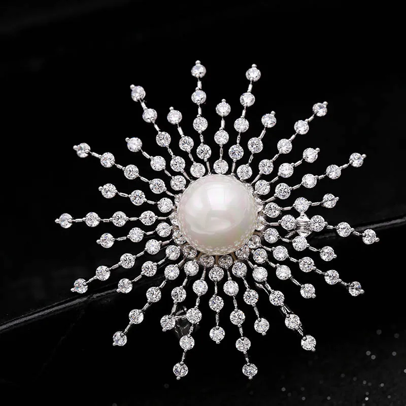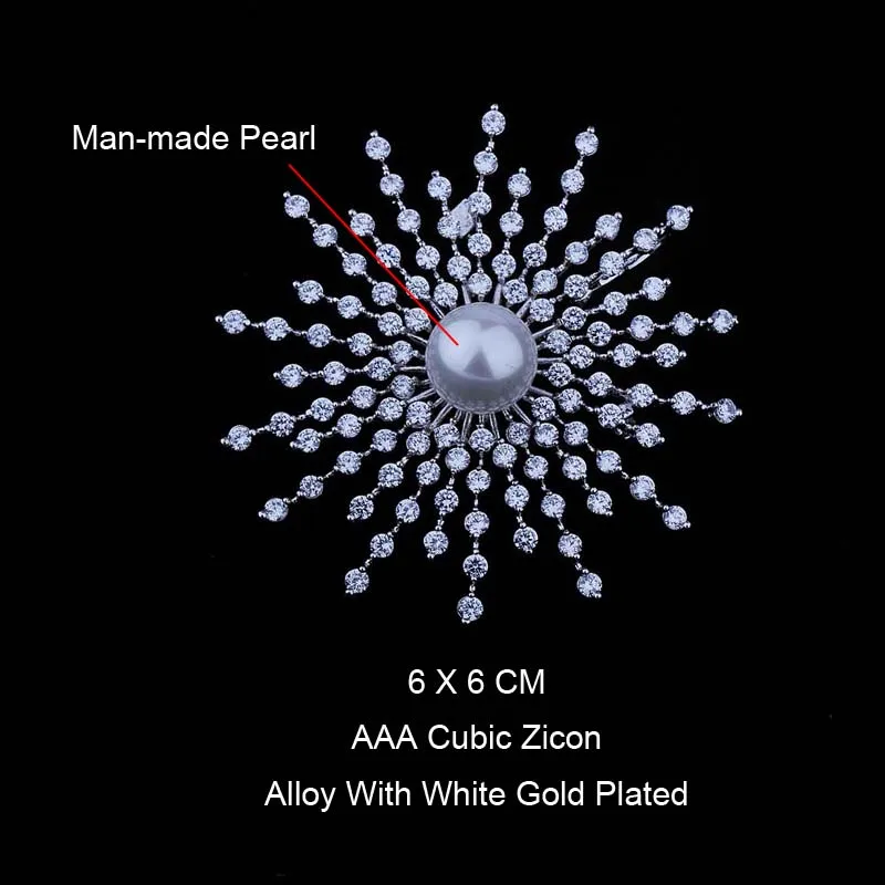 Женская Брошь с искусственным жемчугом, большая брошь с фианитом