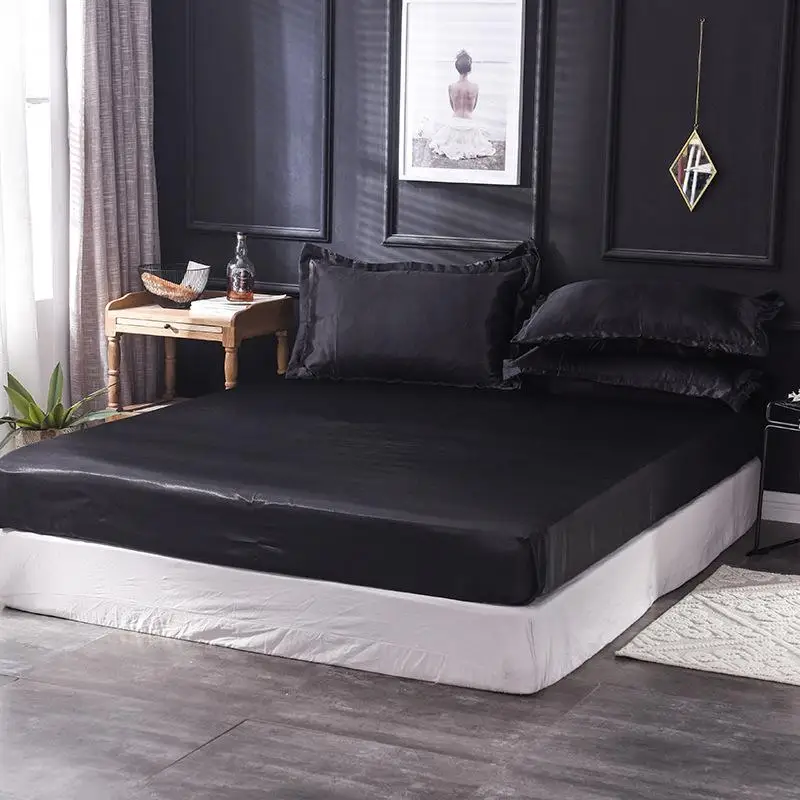 Простыня атласная шелковая на резинке, однотонный наматрасник, прос...