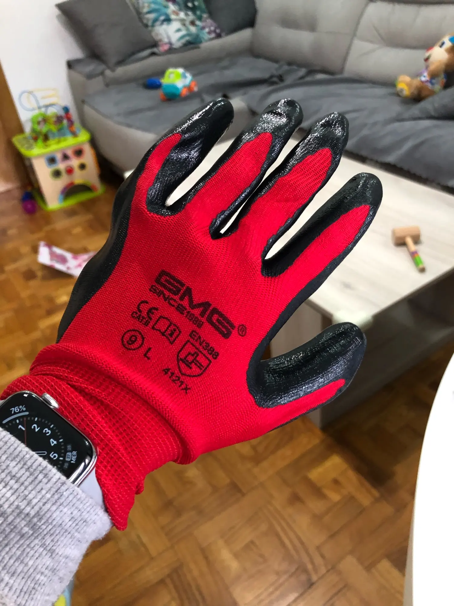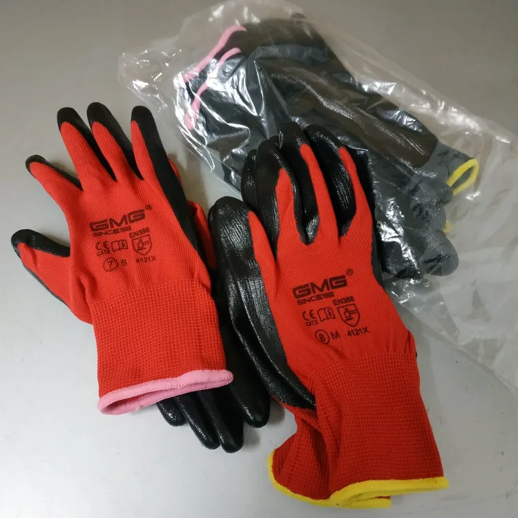 Перчатки Нитриловые, горячая Распродажа, маслостойкие, GMG, красные, полиэфирные, черные, нитриловые, 6 пар