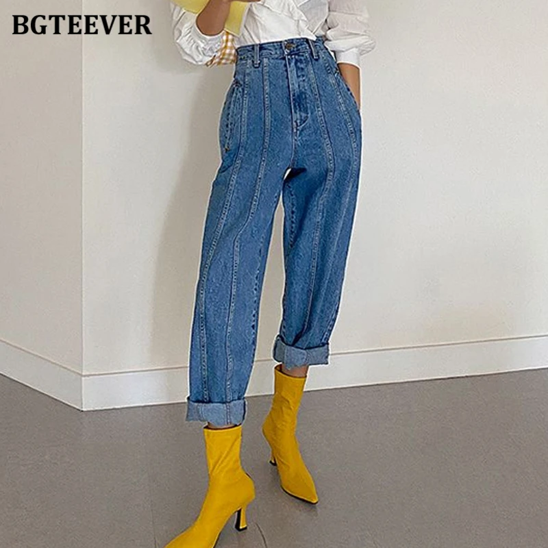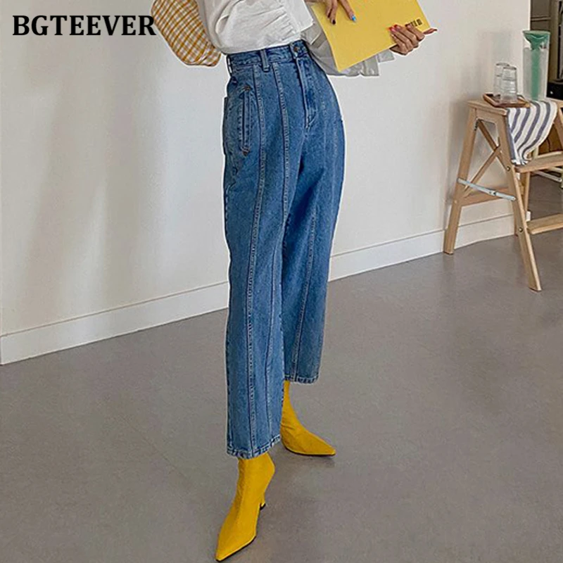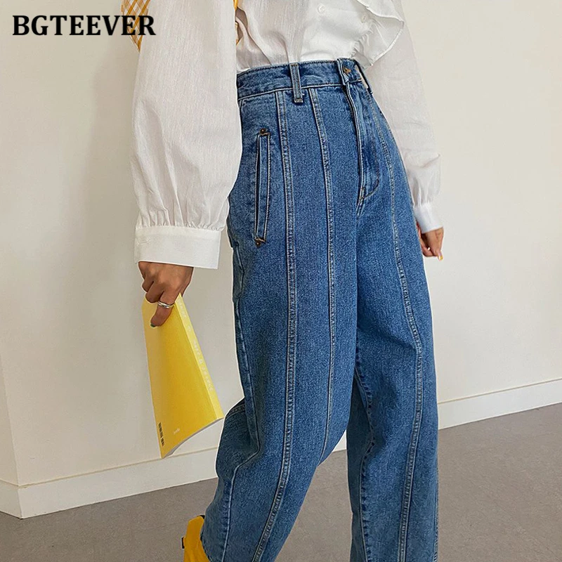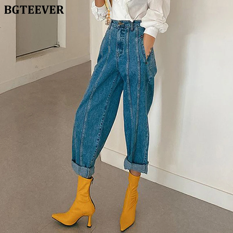 Винтажные джинсовые шаровары BGTEEVER для женщин, свободные синие джинсы со средней талией, брюки из денима, Осень-зима 2020