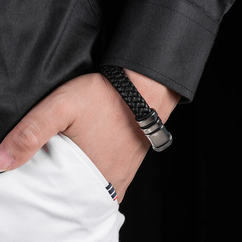 Модный плетеный кожаный мужской браслет, черный гладкий браслет из ...