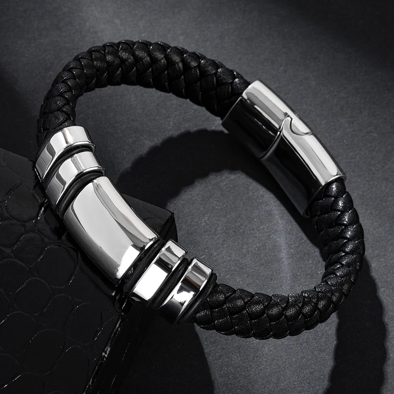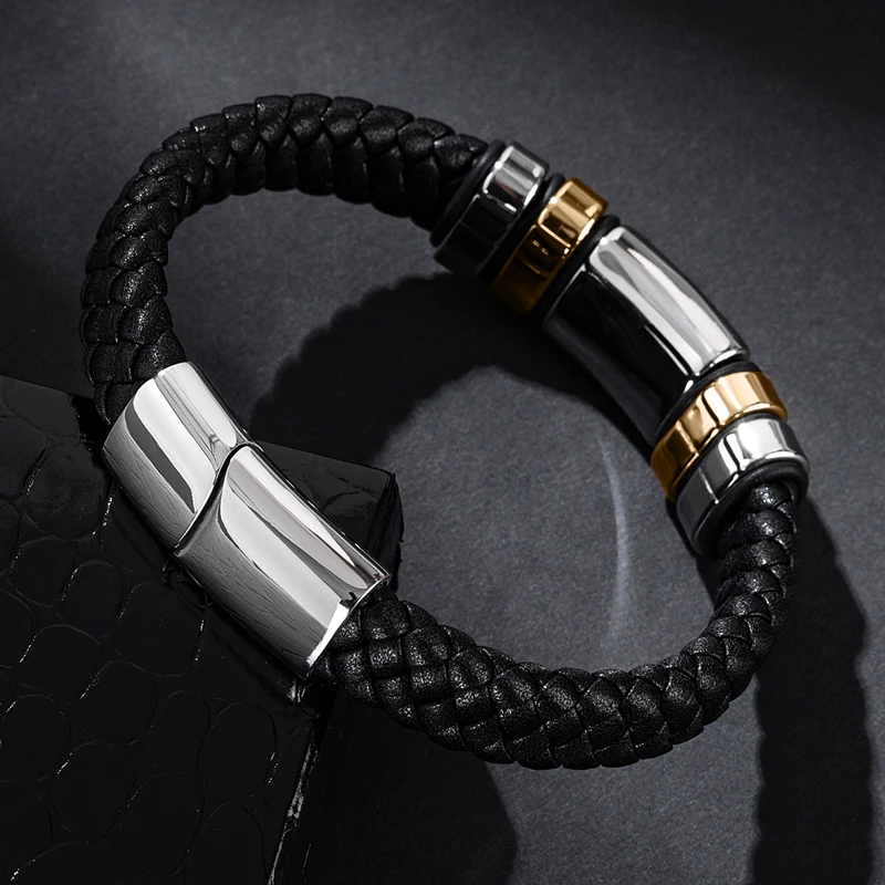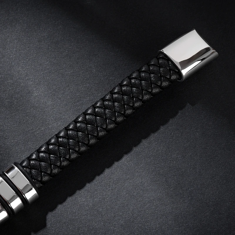 Браслет мужской из нержавеющей стали с двойной плетеной кожей, Ювел...