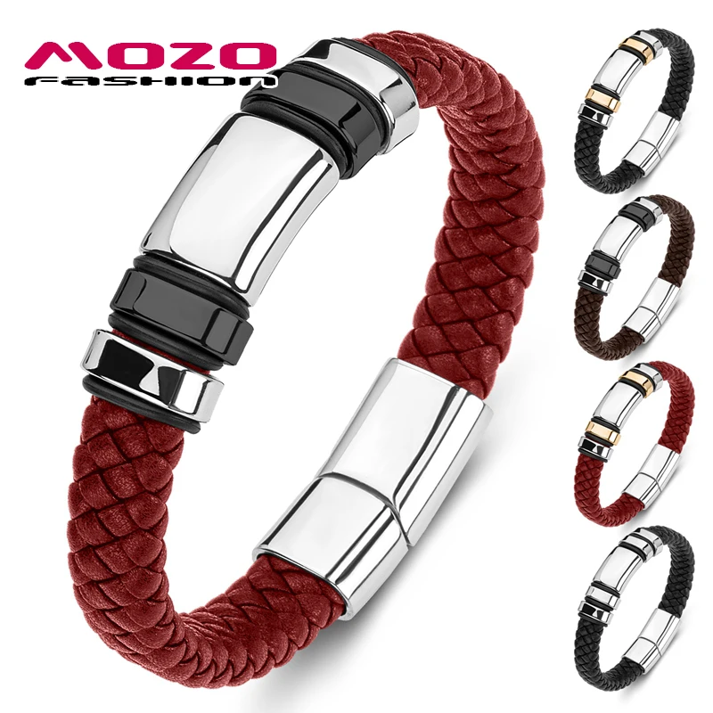 MOZO Мода 2021 мужские браслеты Плетеные веревочные цепи из нержавеющей стали модные браслеты панк натуральная кожа женские ювелирные изделия 172