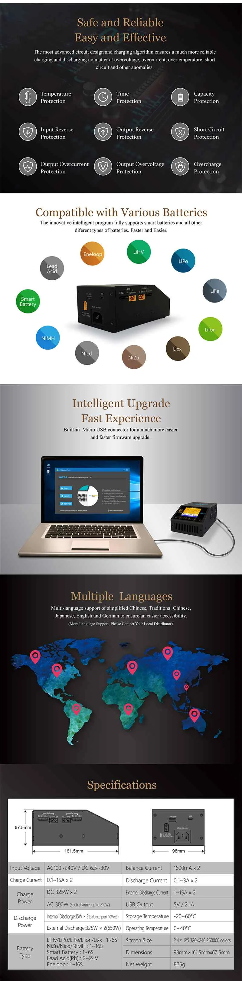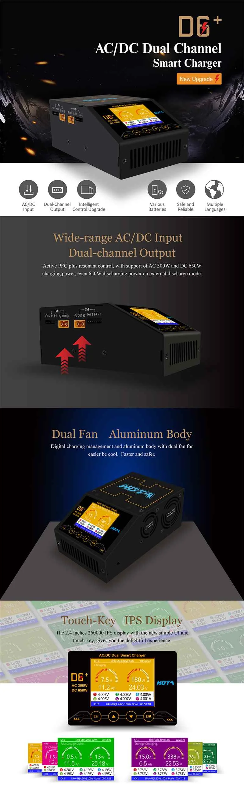 HOTA D6 Plus AC 300W DC 2X325W 2X15A Двухканальное умное зарядное устройство Dis зарядное устройство для FPV гоночного дрона RC квадрокоптера радиоуправляемых частей 4