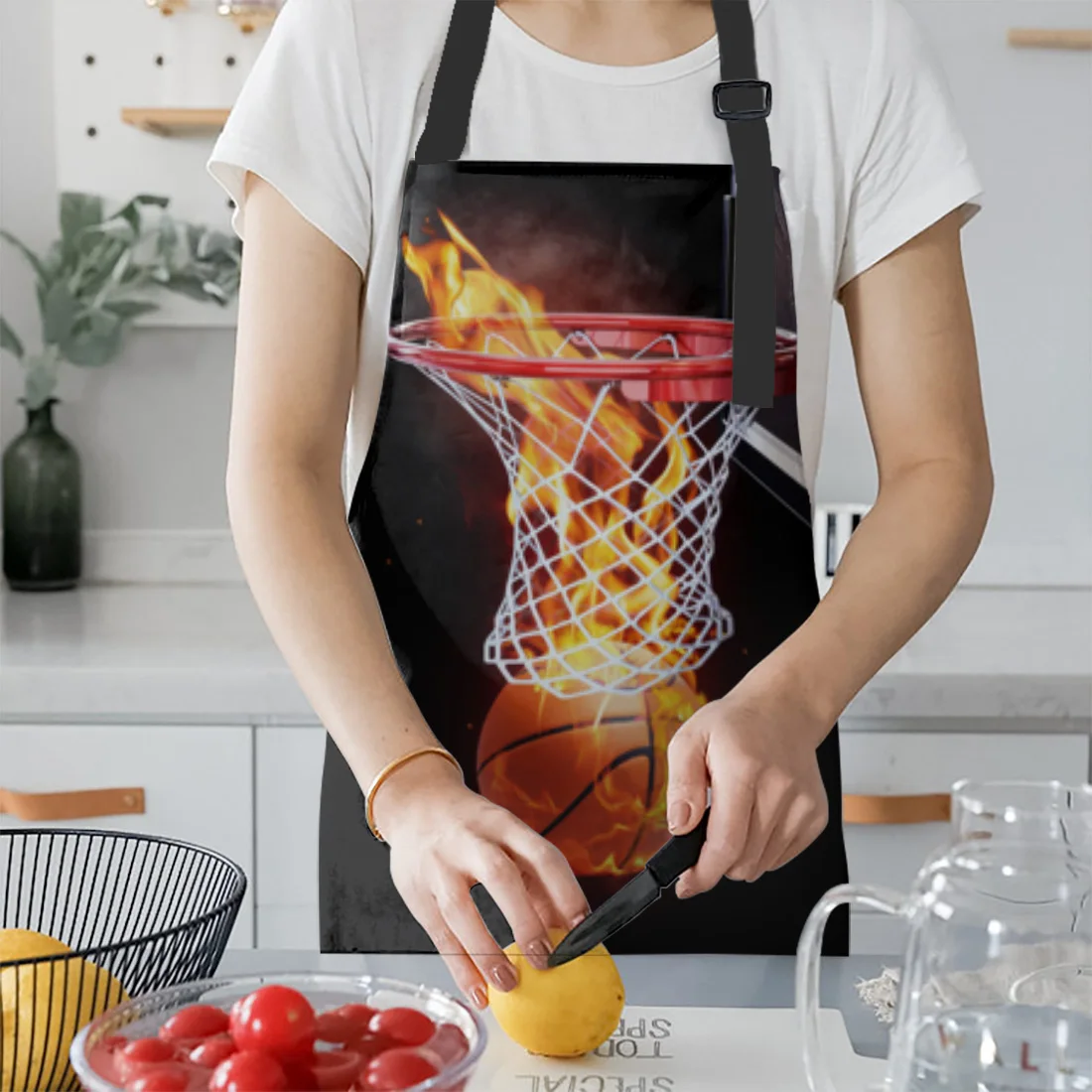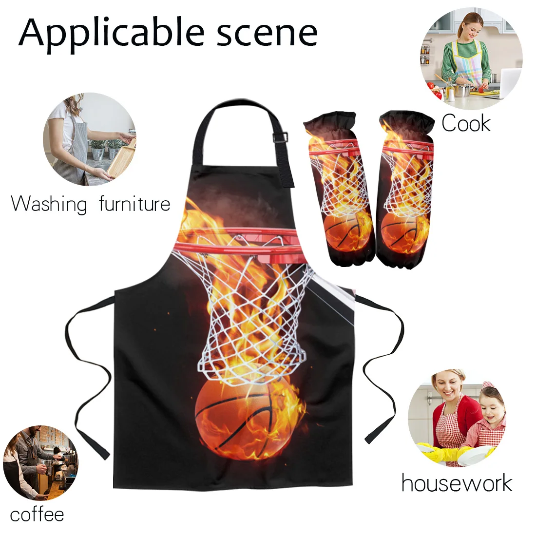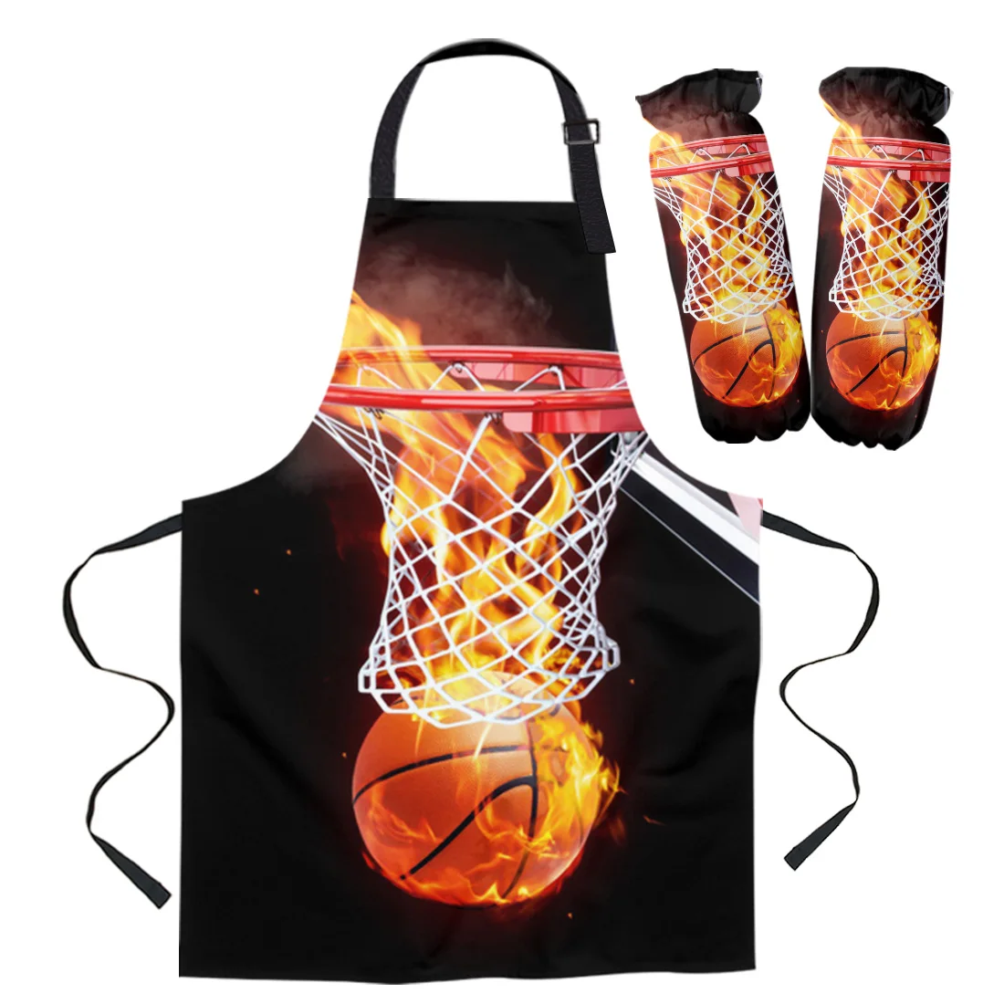 Мяч баскетбольный с пламенем, спортивный Художественный набор фартуков, кухонные принадлежности для приготовления пищи для взрослых, манжеты, варежки, нагрудники, Детские фартуки