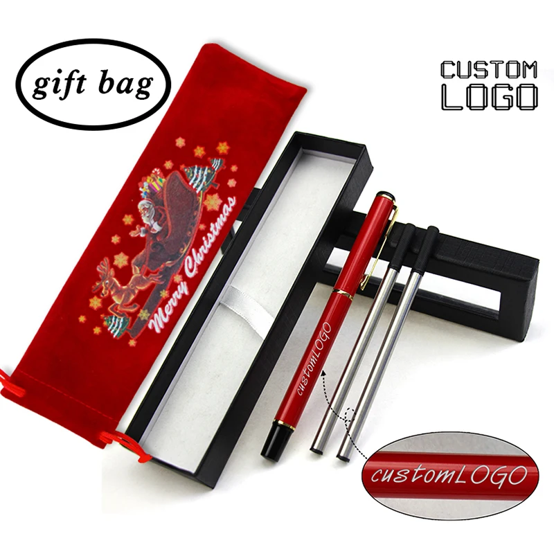 1 Набор высококачественная металлическая гелевая ручка с логотипом на заказ, гравировочная подарочная ручка для подписи, Рождественская сумка, студенческие канцелярские принадлежности, черная ручка с футляром для ручек
