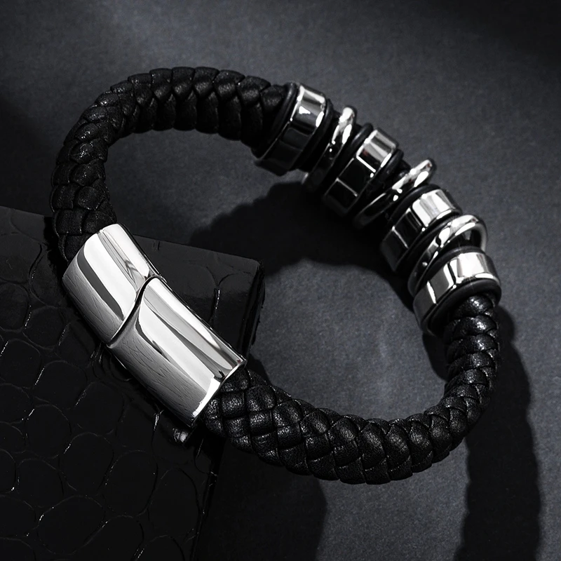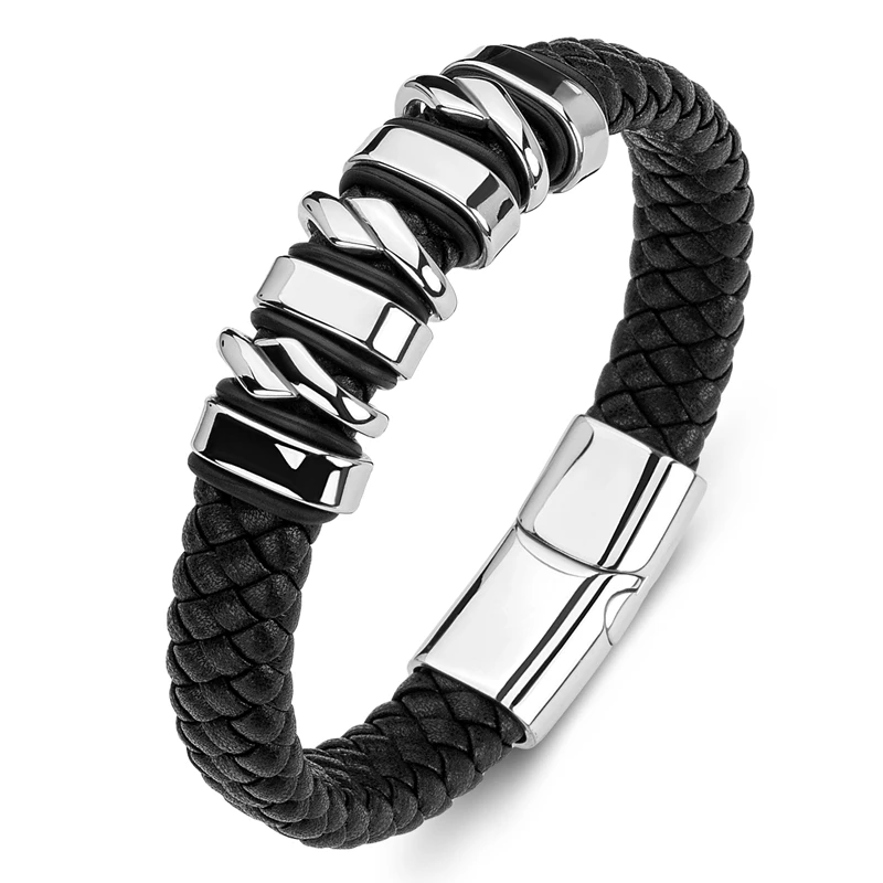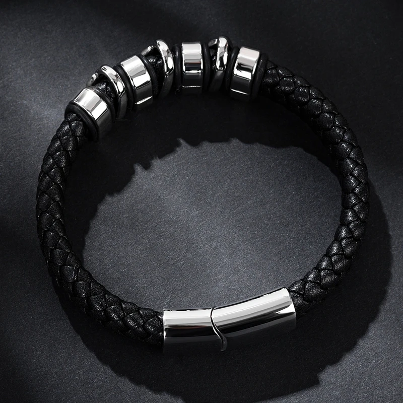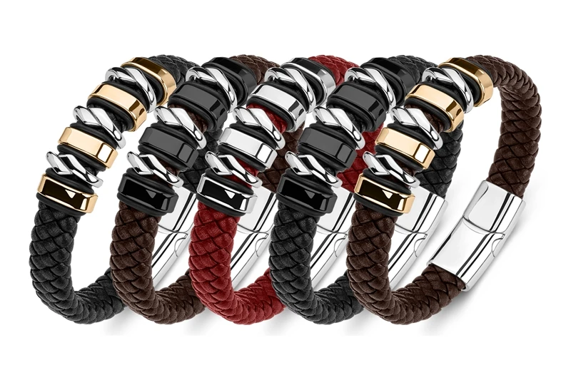 Браслет мужской из нержавеющей стали с двойной плетеной кожей, Ювел...