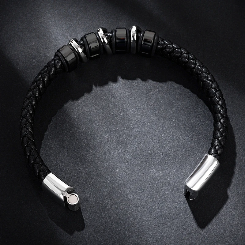 Модный плетеный кожаный мужской браслет, черный гладкий браслет из ...