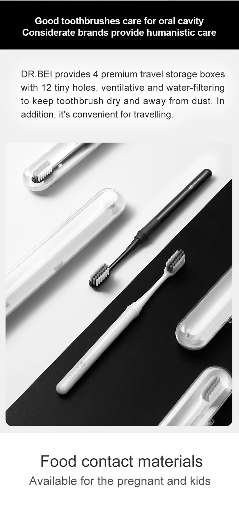Зубная щетка DR BEI из бамбука, удобная мягкая щетка для чистки десен, с 4 дорожными ящиками для хранения, для гигиены полости рта