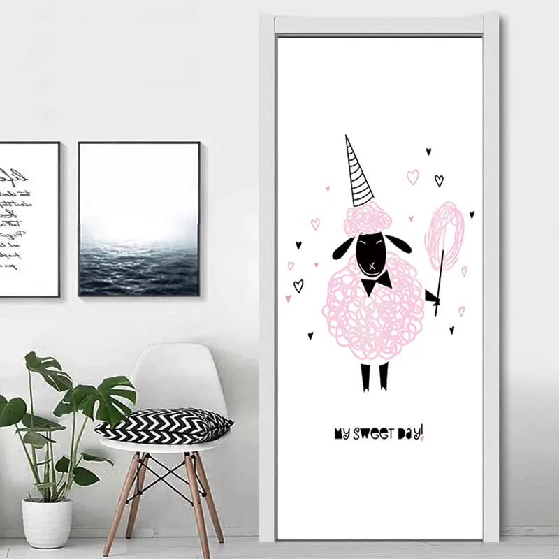 Сказочная принцесса, искусство для двери, украшение детской комнаты, дверная наклейка, Мультяшные животные, самоклеящиеся виниловые обои сделай сам
