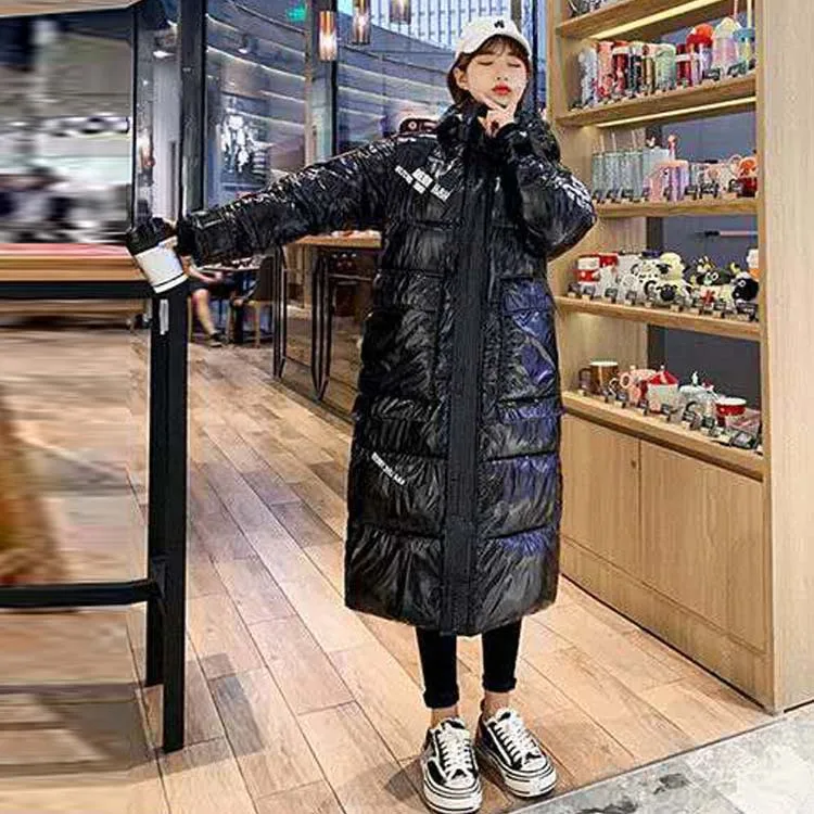 Зимнее пальто для женщин размера плюс, хлопок, полиэстер, длинный, с буквенным принтом, на молнии, стандартный, полный