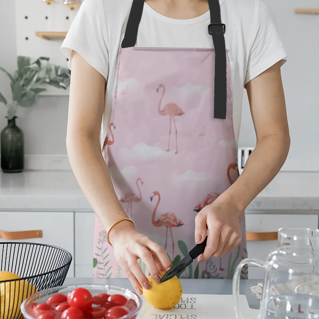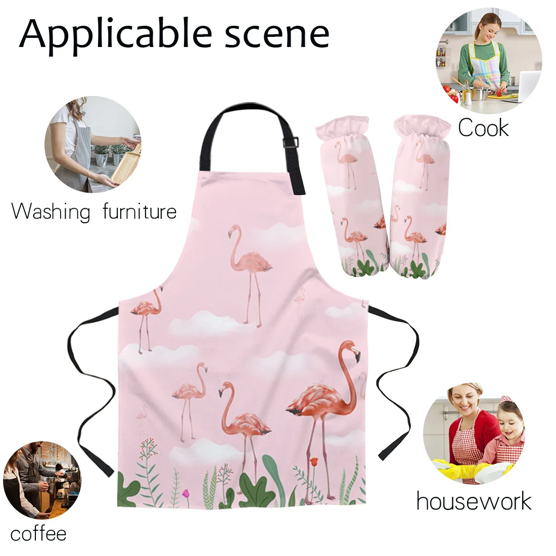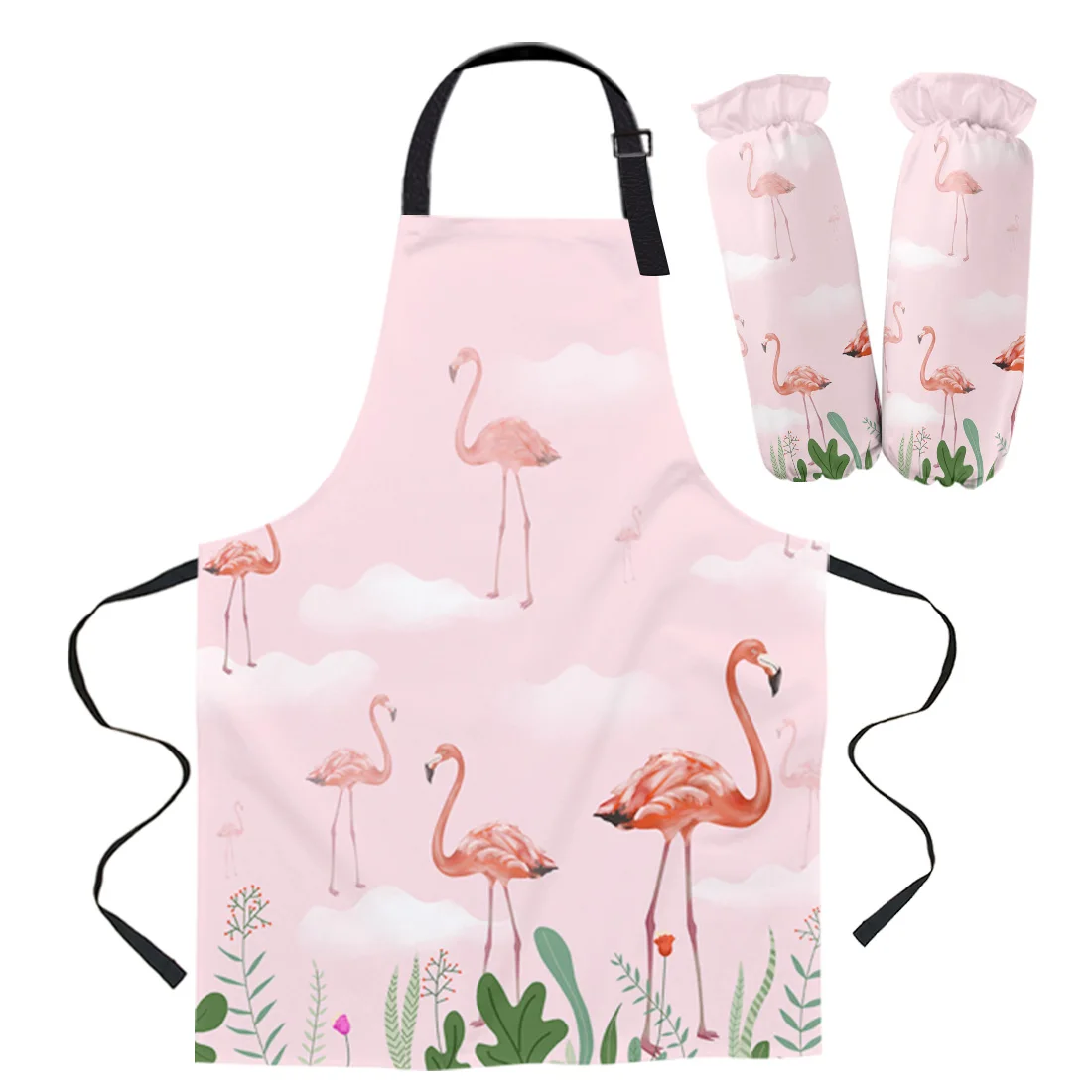 Фартук для кухни, кухонные прихватки с фламинго, розовыми облаками и цветами, для приготовления пищи в саду, Детские и женские фартуки, манжеты, Аксессуары для выпечки