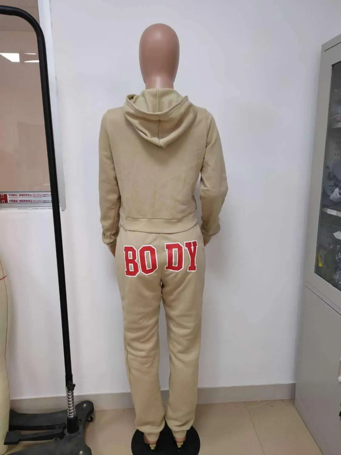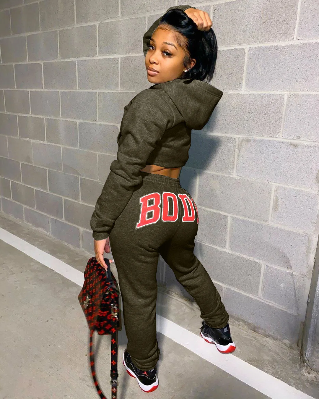 Осенне-зимний плотный спортивный костюм с буквенным принтом, женский спортивный костюм для бега, женский короткий топ и брюки, спортивные костюмы, комплект из двух предметов, наряды
