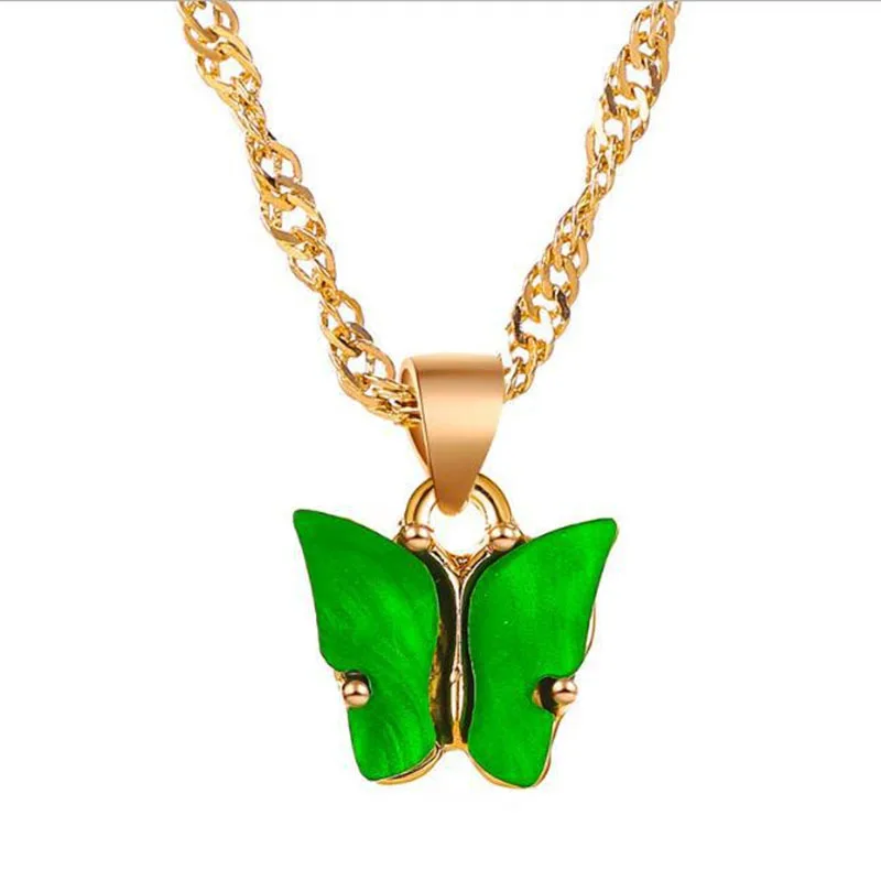 1 шт., розовый, синий, фиолетовый, красный, белый, черный цвета, акриловая бабочка, животные, подвеска, ожерелье для женщин, длинная цепочка, Очаровательное ожерелье