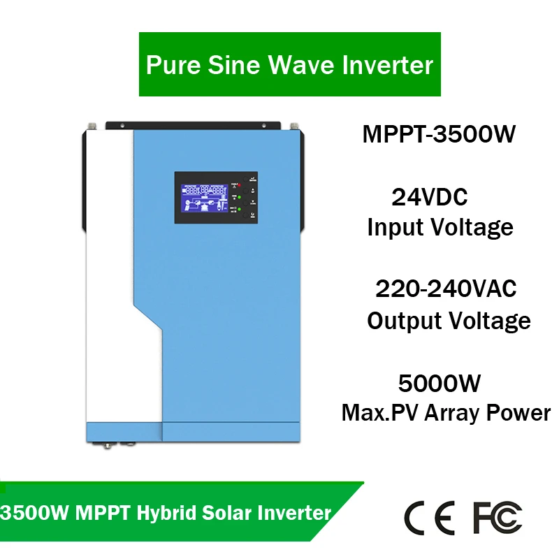Гибридный солнечный инвертор 3500 Вт с MPPT SCC широкий диапазон входного напряжения в-В постоянного тока а 24 В инвертор немодулированного синусоидального сигнала