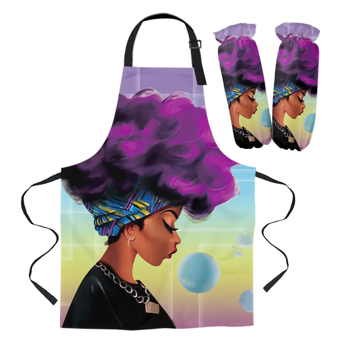 Африканский женский фартук с фиолетовыми волосами, Женский фартук, маленький фартук для взрослых и детей, манжеты для духовки, варежки, кухонные принадлежности для выпечки, нагрудники, фартуки