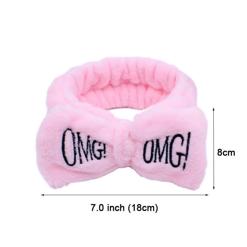 Повязка на голову женская из кораллового флиса с бантом и надписью OMG