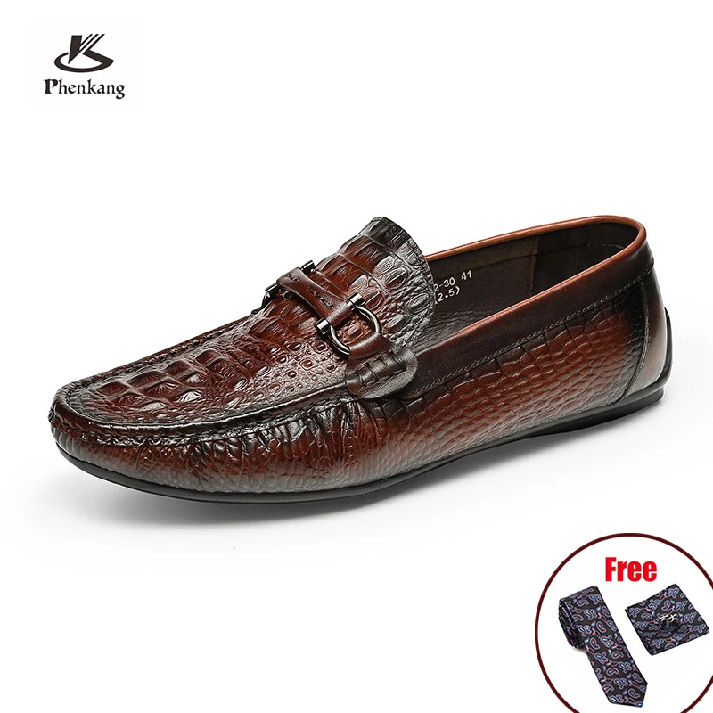 Мужские кожаные летние повседневные туфли Phenkang, мужские классические слипоны, кофейные мужские лоферы из натуральной кожи, обувь для вождения