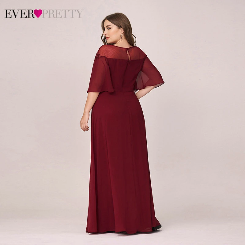 Размера плюс Бордовое платье для матери невесты Ever Pretty EP00473BD, шифоновое вечервечерние платье трапециевидной формы с круглым вырезом и аппликацией, 2020
