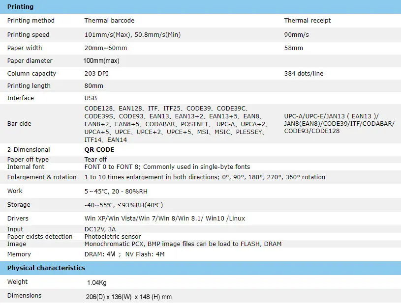 Термопринтер штрих-кодов, ширина бумаги 20-60 мм 58 мм
