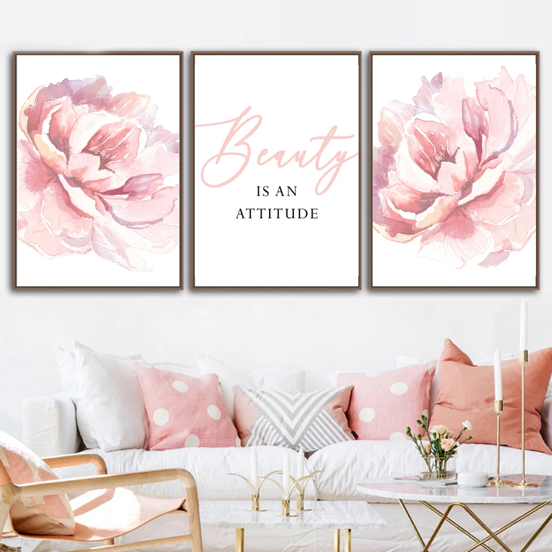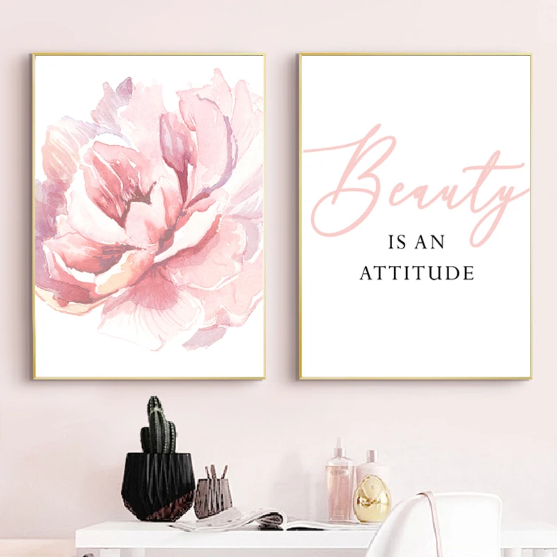 Красота художественная работа с цитатами печать румян розовый цветок акварельная картина холст плакат модные настенные картины для девочек спальня домашний декор