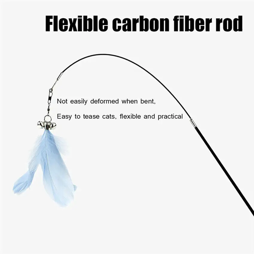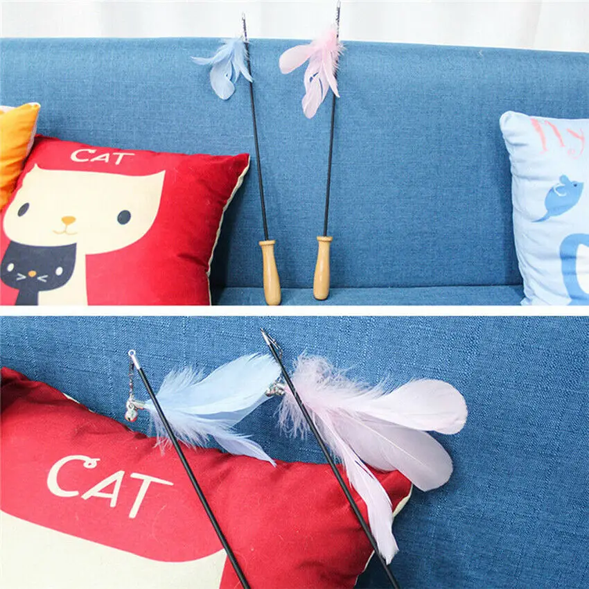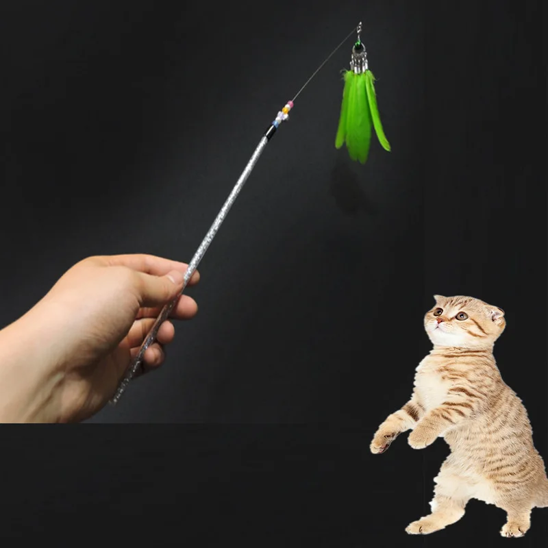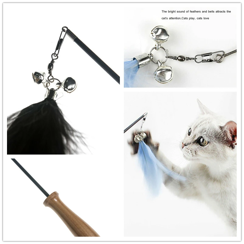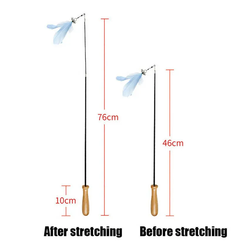 Телескопическая рыболовная удочка для домашних животных, забавное взаимодействие из массива дерева, перьевой колокольчик, палочки, удочка, игрушка для котят