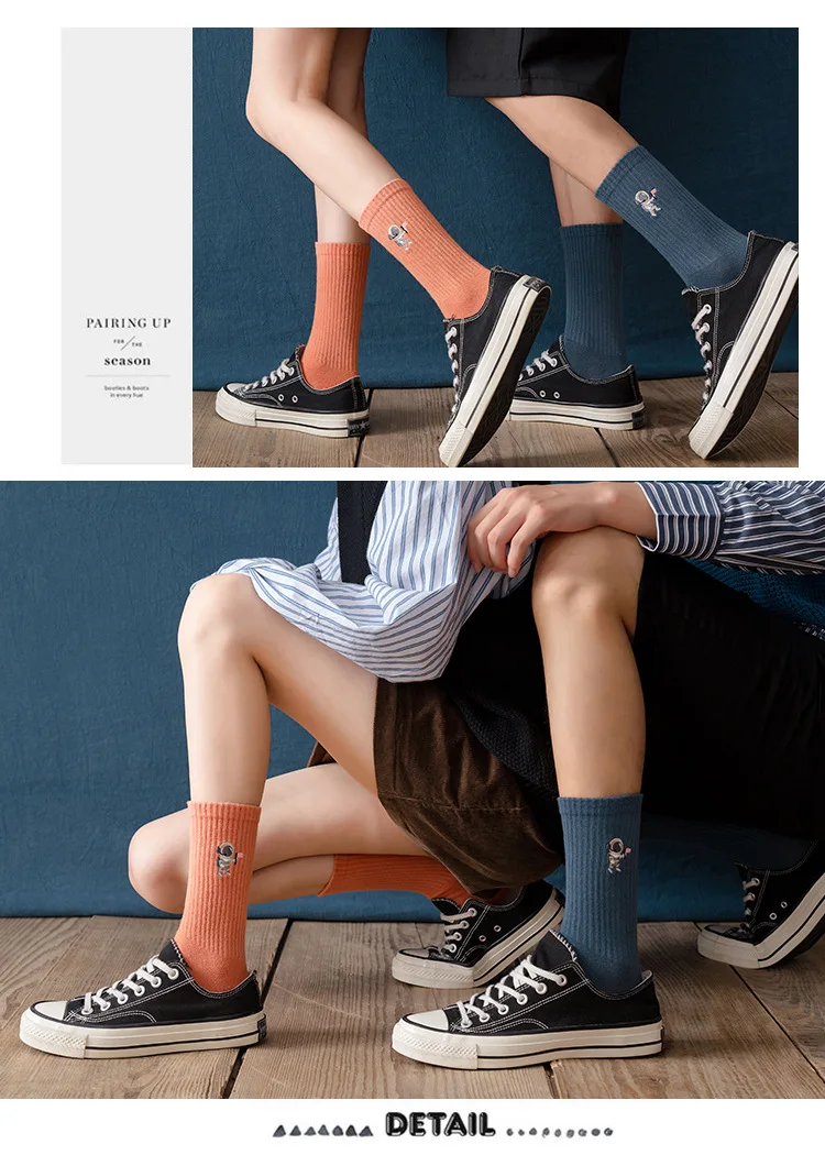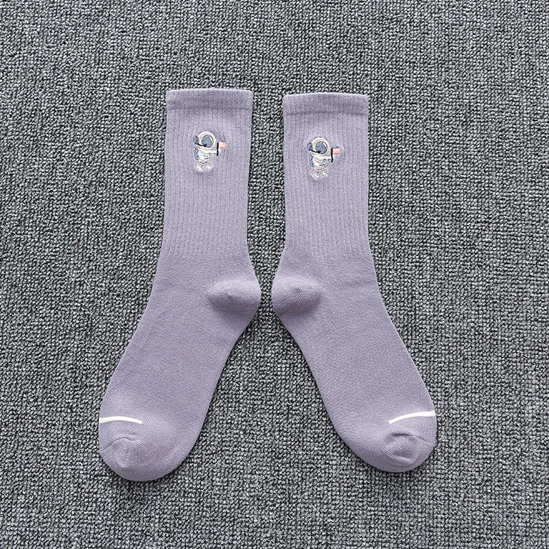 Модные женские и мужские вышитые хлопковые носки для пар астронавто...