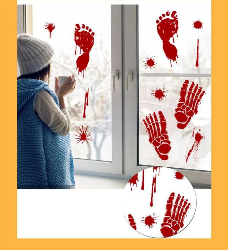 3D ужас Кровавый отпечаток руки Хэллоуин украшения окна стены наклейки кровавый отпечаток пальца стопы обои водостойкие двери декор