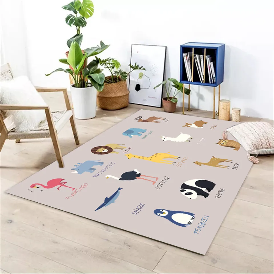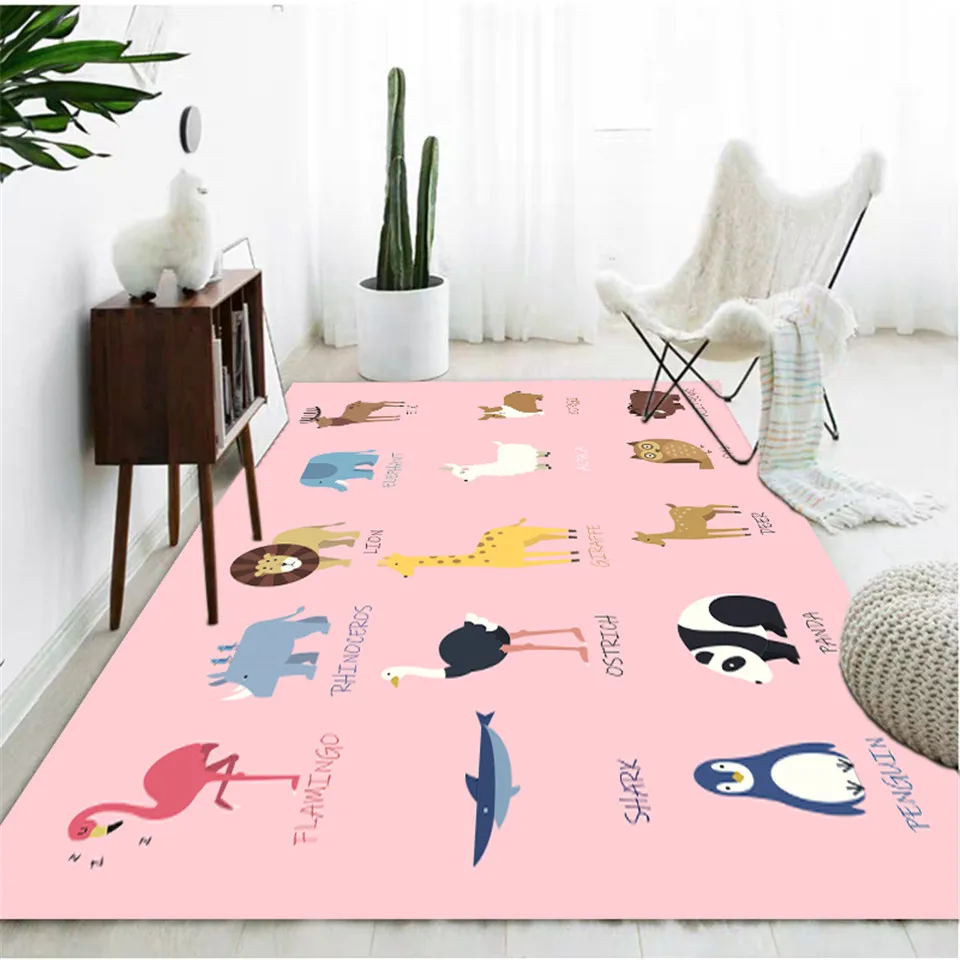 Милый мультяшный коврик с рисунком животных, розовый моющийся ковер, детский декоративный ковер в скандинавском стиле для спальни, детский игровой коврик, нескользящий ковер для спальни