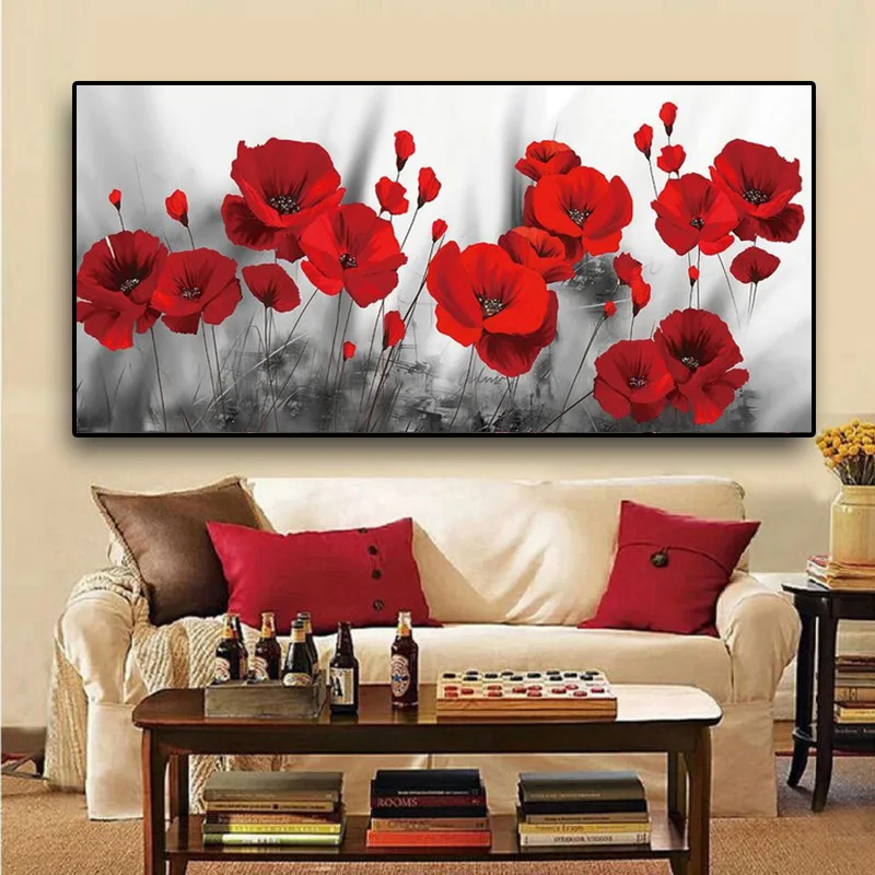 Картина на холсте Красный мак, декоративная картина акварелью для гостиной