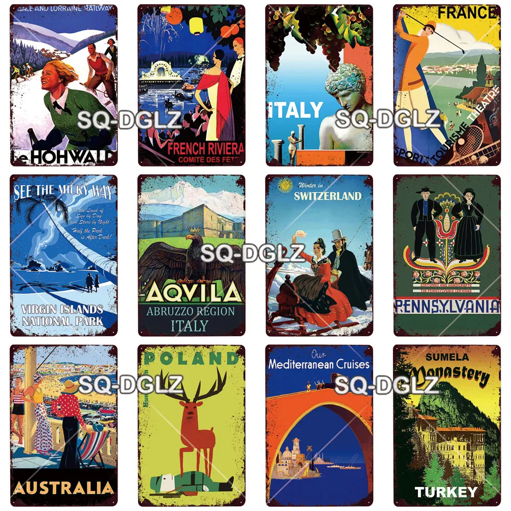 SQ-DGLZ Германия город металлический знак винтажная табличка Настенный декор для бара страна пластина жестяная вывеска для путешествий АвстралияПостер "Швейцария"