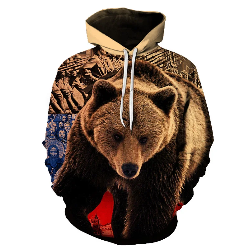 Толстовка мужская с капюшоном и принтом животных, брендовый свитшот...