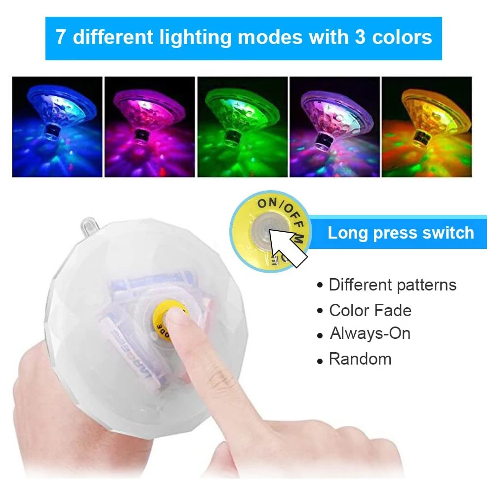 Подводный светильник для ванной, плавающая светодиодсветодиодный лампа, мигающий пруд, бассейн, горячая ванна, спа Ночной светильник, уличное украшение для сада вечерние, диск